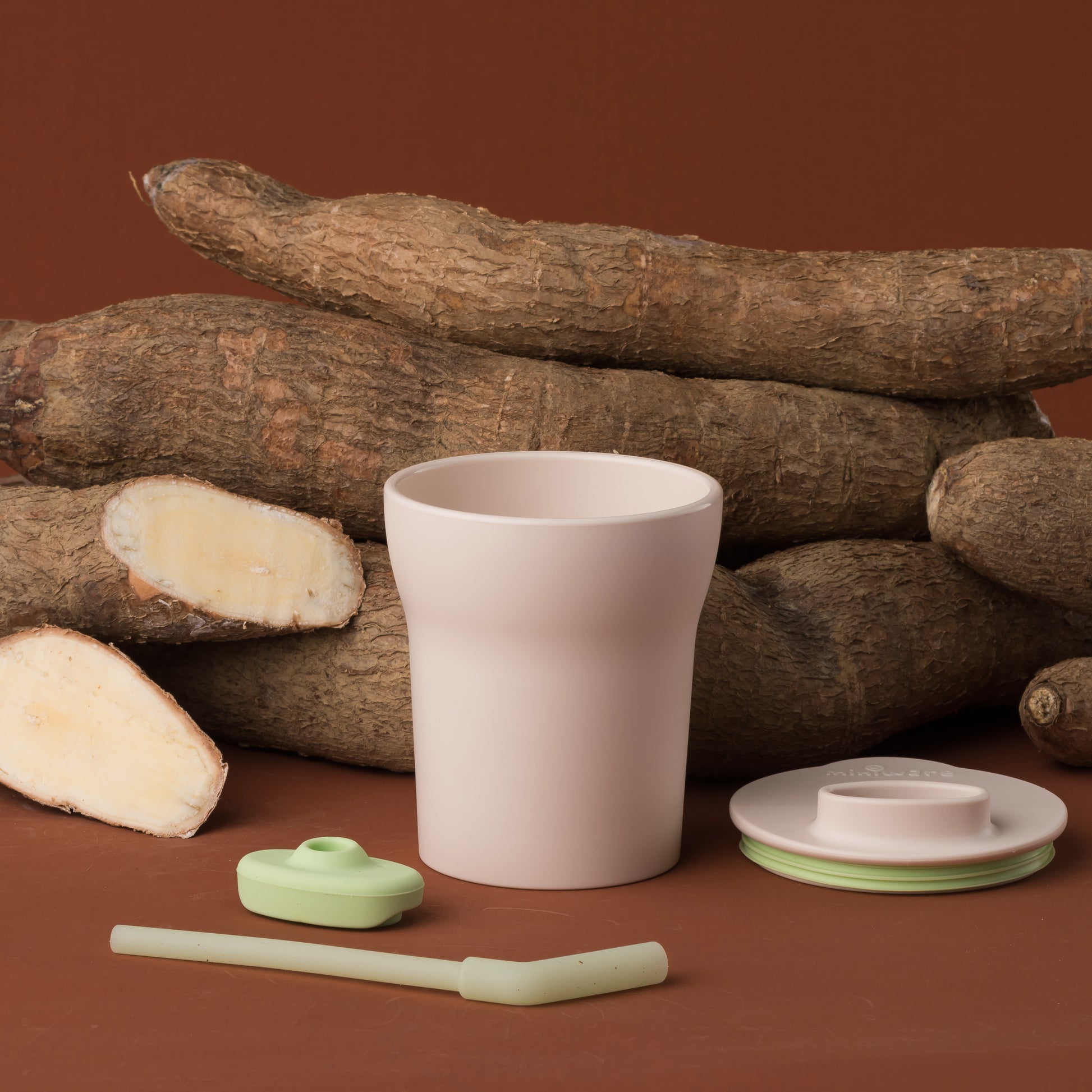 Goes from silicone straw to non-drip lid with spout, to a real cup. The non-drip lid has a spout perfectly sized for little mouths. Earth and family safe materials, biodegradable and food grade. Dishwasher safe and easy to clean.