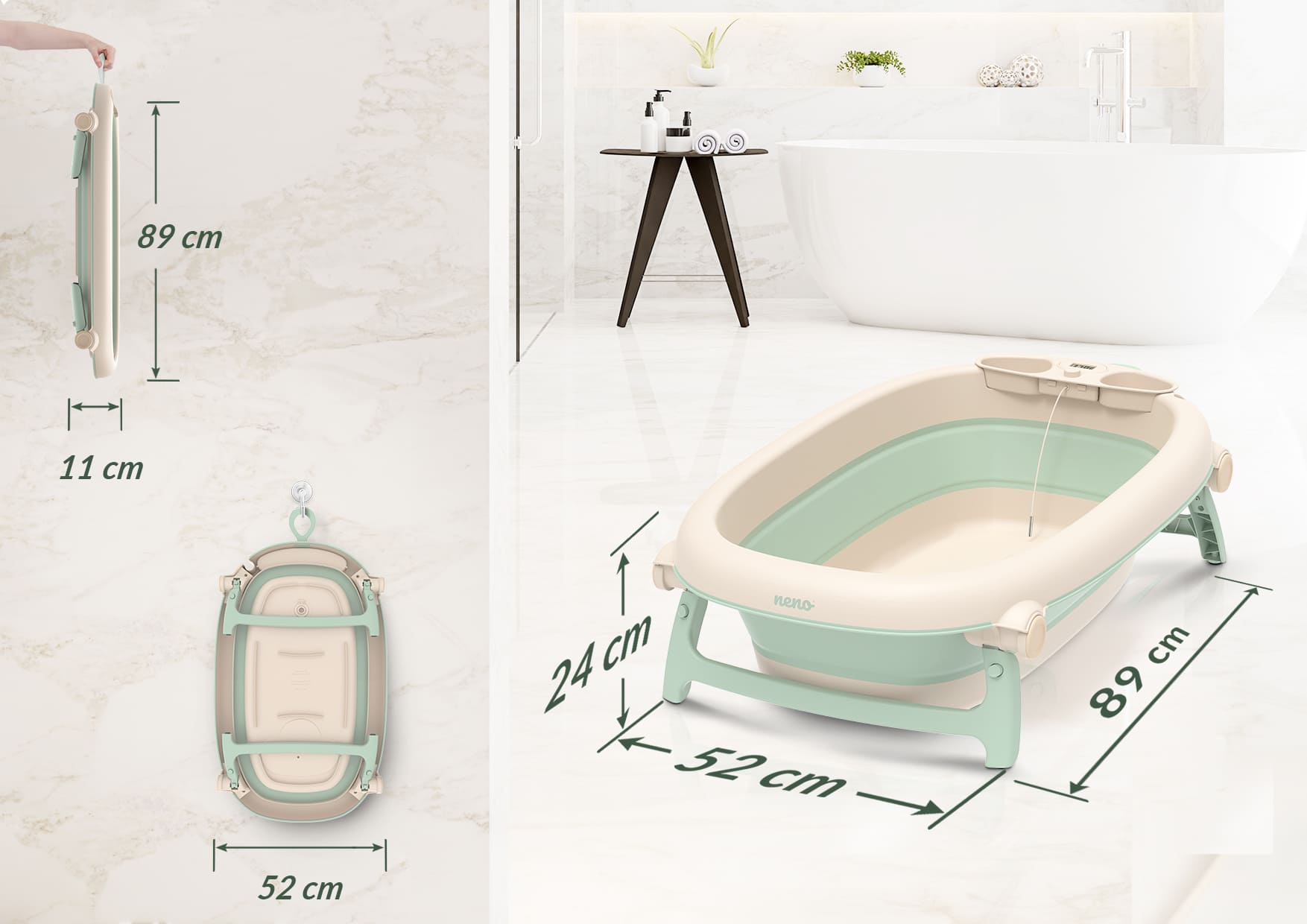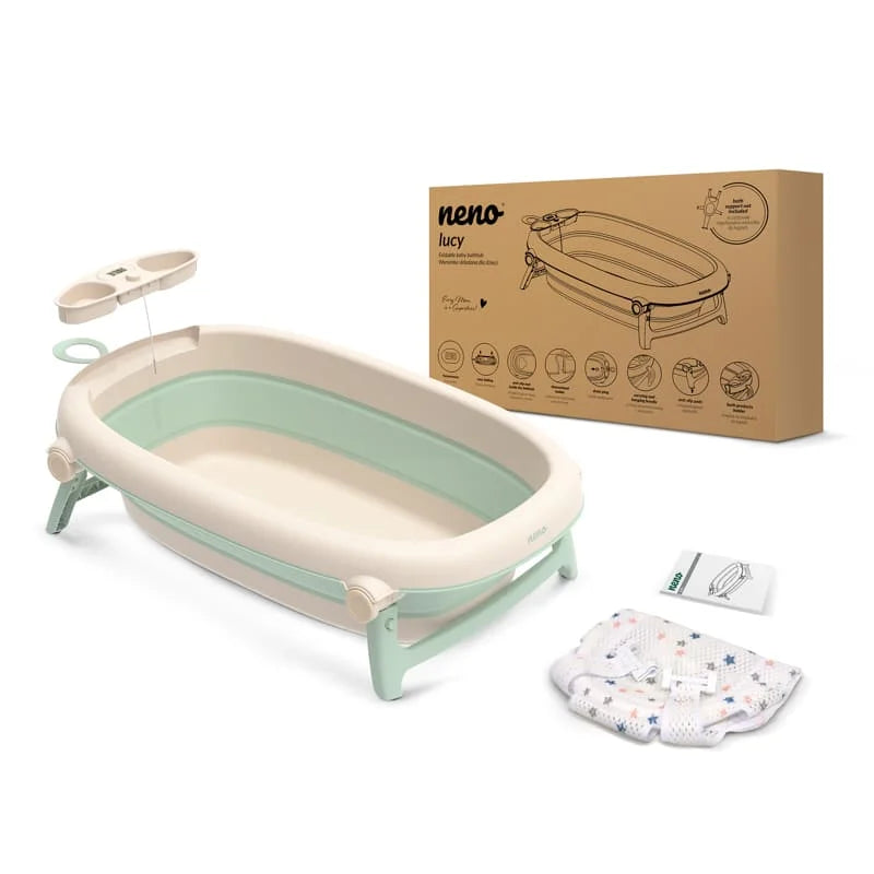 The Neno Lucy is a practical bath made from high quality materials that are safe for your baby’s health. It is lightweight and foldable, so it is easy to transport. This makes it ideal for use both at home and when travelling. The bath has a water temperature thermometer and an adjustable insert for easier support of your baby. The Neno Lucy is also equipped with non-slip feet to ensure stability and safety during bathing.