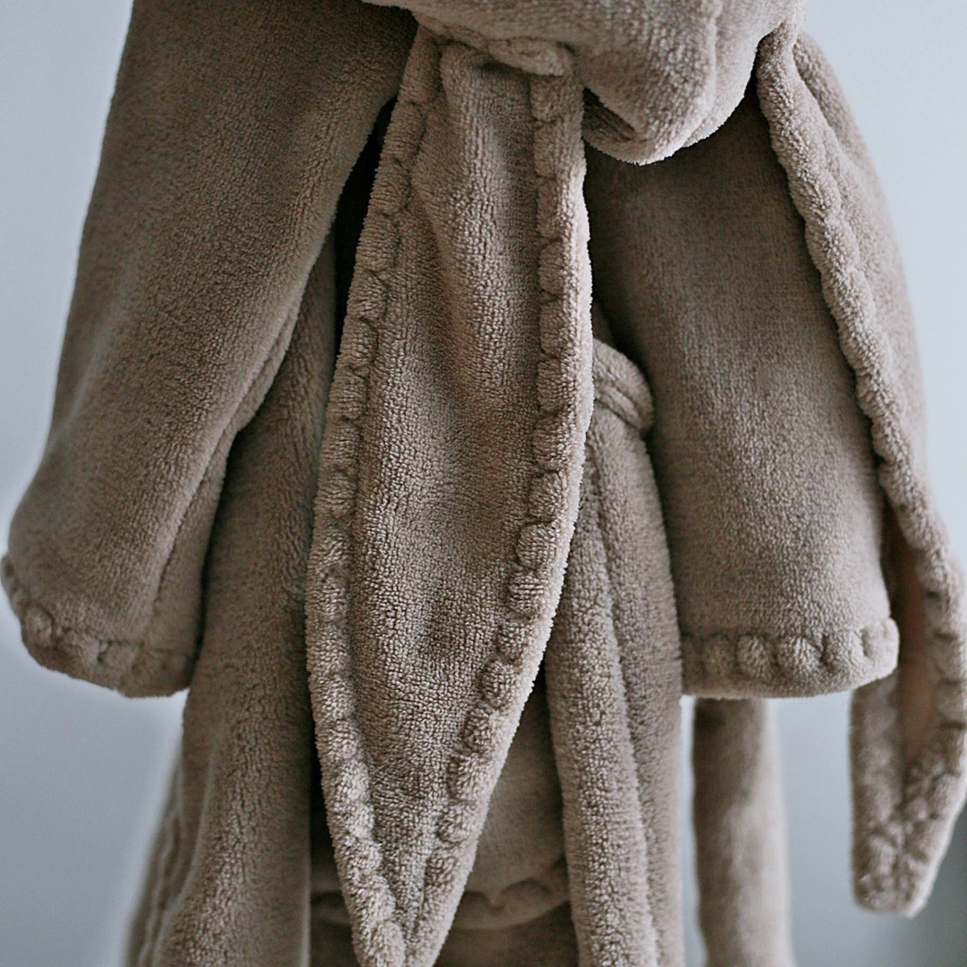 Luxury bathrobe with adorable design and super soft fluffy fabric. Original stitch pattern on the edges makes this bathrobe truly pretty and unique.