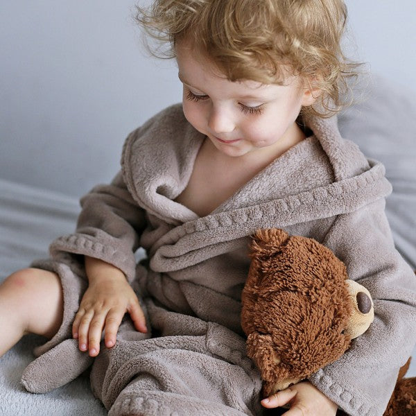 There are plenty of bathrobes out there but we wanted to have a really special one. We’ve chosen a super soft fabric for full comfort of the child. We’ve used a special stitch pattern to make our bathrobes truly different from others.