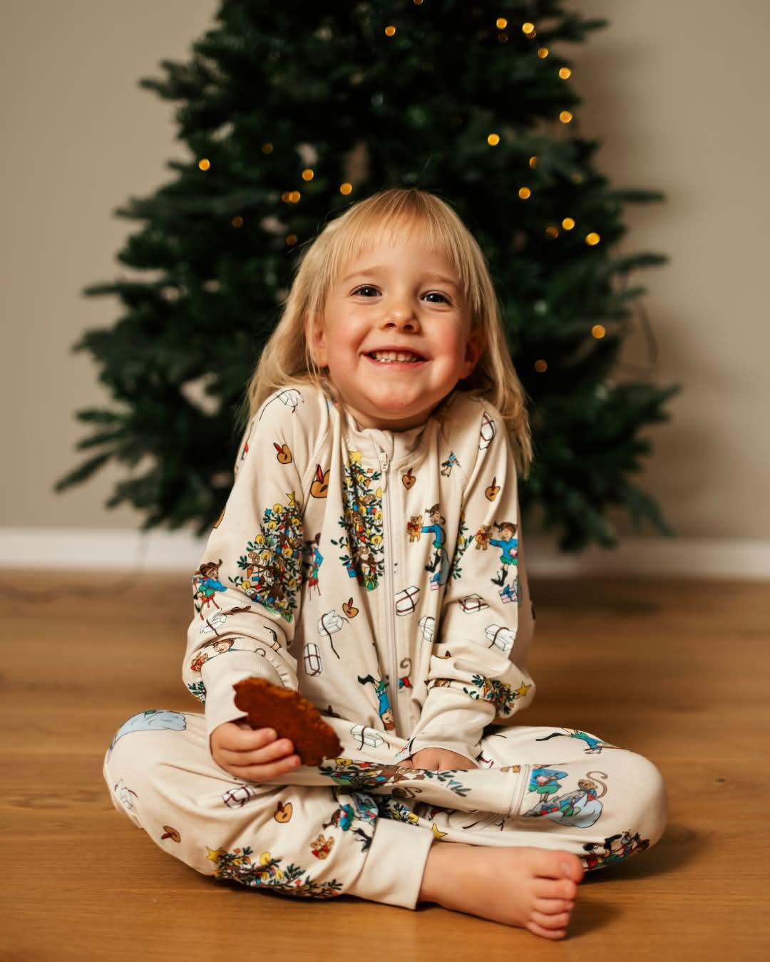 Two-piece pajamas in soft and comfortable bamboo. The pajamas consist of a pair of trousers with elastic at the waist and wide cuffs and a long-sleeved shirt also with cuffs. Bamboo is an environmentally friendly choice of material, it is grown completely organically without pesticides and is 100% biodegradable. Bamboo is smooth and comfortable against the skin and allows the skin to breathe. Its thermal properties are the same as wool and silk, making the material feel warm when it's cold and cool when it's warm - a perfect material for children's clothing.