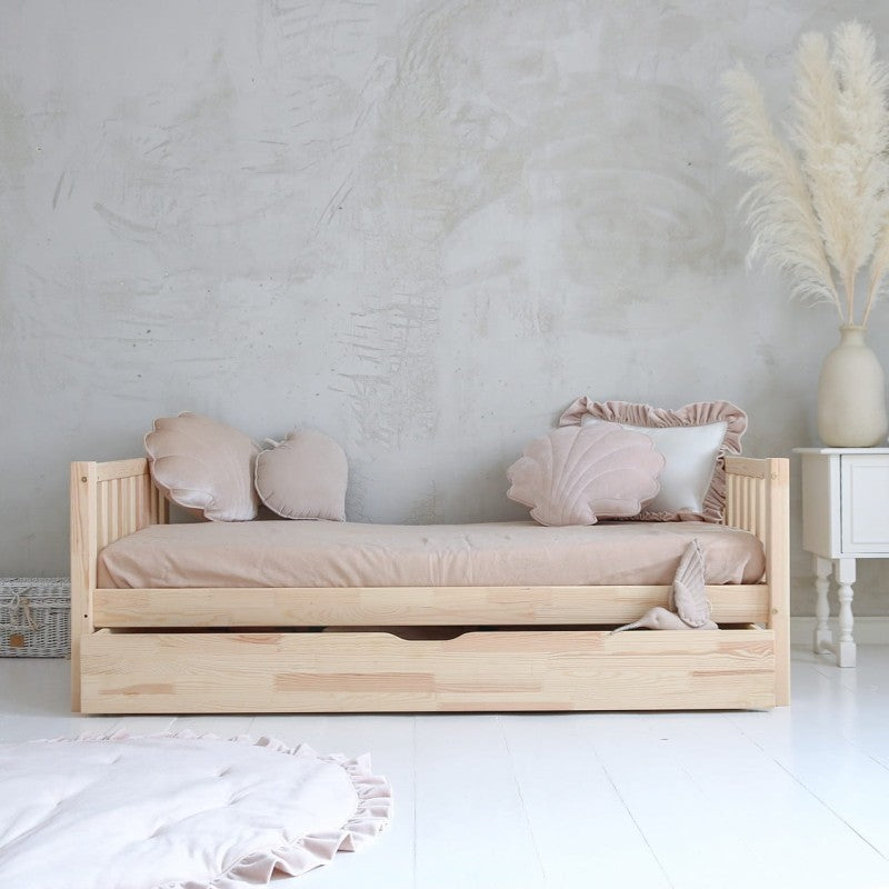 The beds are made of selected pine plywood class 1. Glued wood is more durable than solid wood, does not crack, and has no defects (knots). All bed elements are meticulously hand and mechanically sanded, smooth, with rounded shapes.