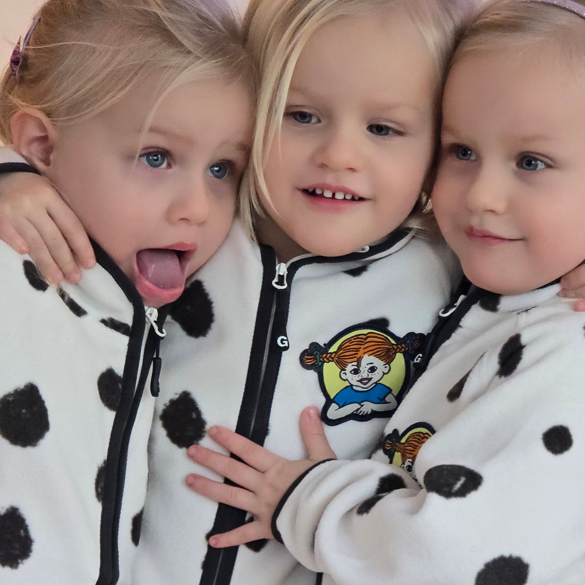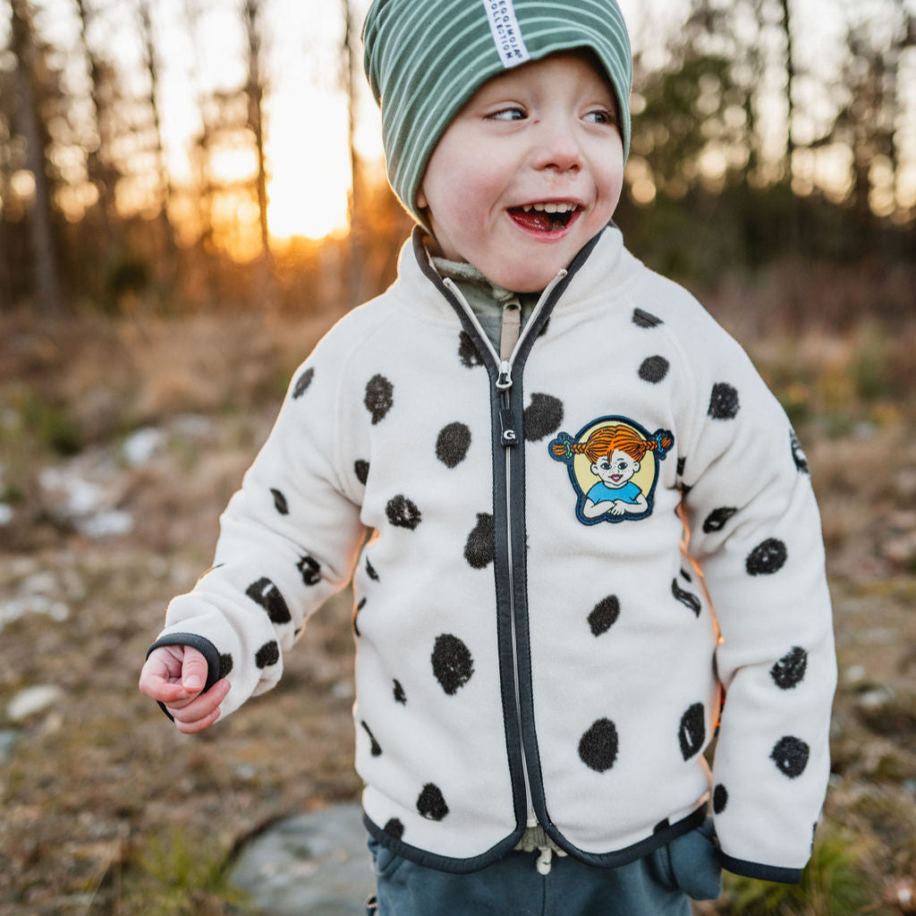 This soft and warm fleece jacket is perfect for all little adventurers who want to have a little extra Pippi strength with them! There is a patch with a Pippi motif on the chest, reminding them that the world is full of mischief and exciting antics. Perfect as a spring and autumn jacket or as a comfortable layer 2 on cooler days. Elastic hems provide a comfortable fit and keep the jacket in place, and the smooth zipper makes putting it on and taking it off easy - because who has time to fuss when there are adventures to experience? A playful and cozy fleece jacket for all children who want to carry a little of Pippi's courage and joy with them every day.