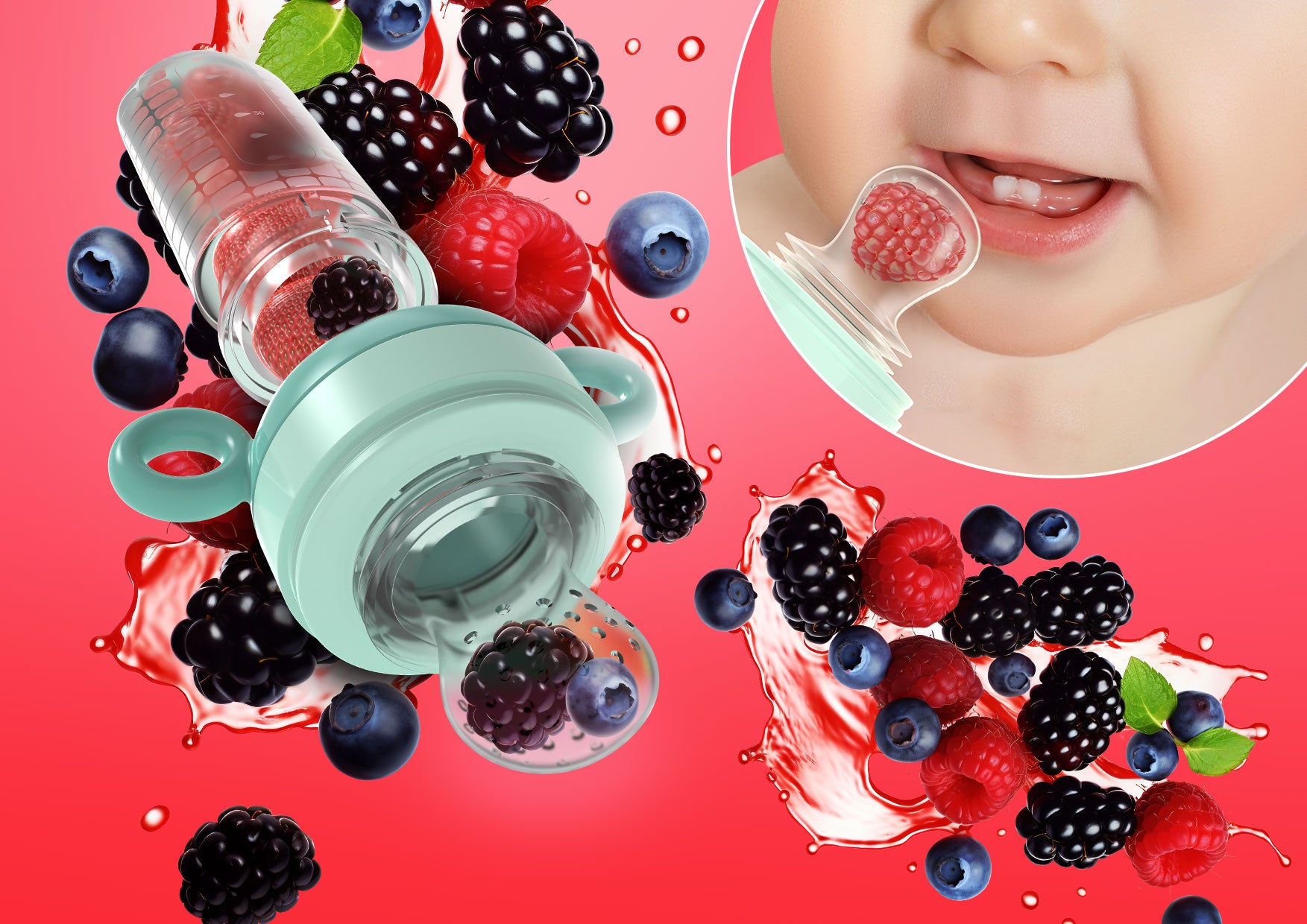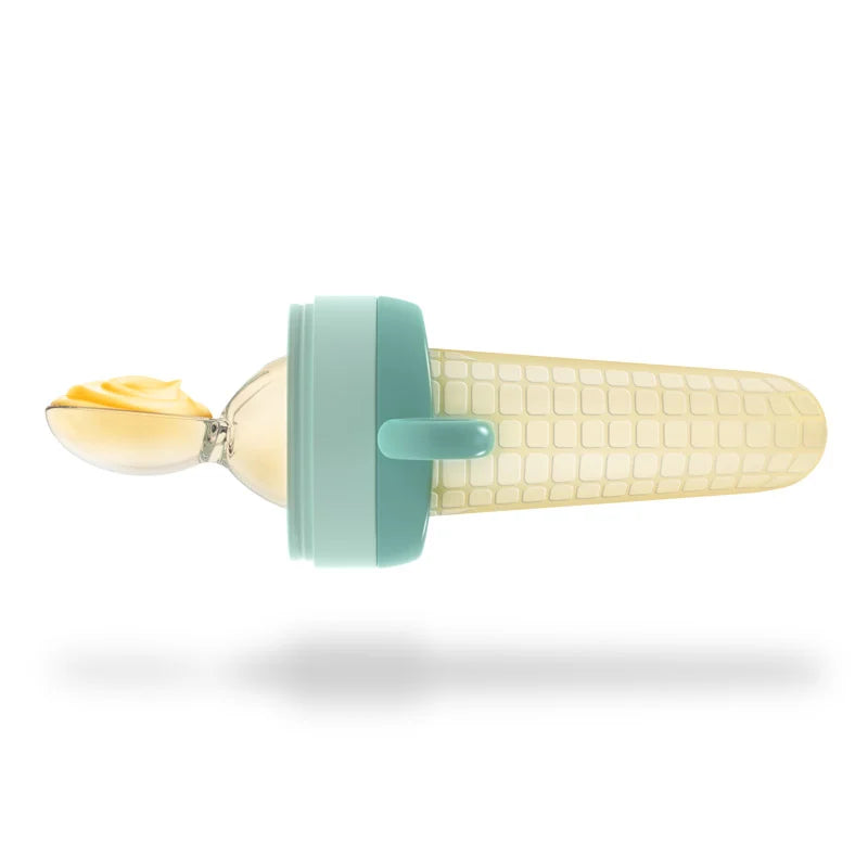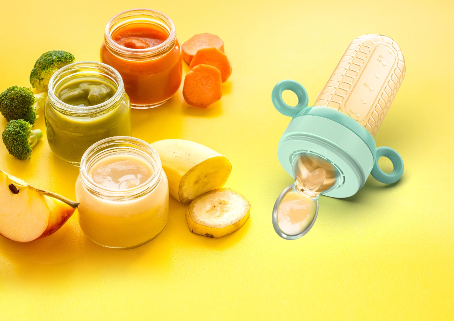 Fruit mousses or thick soups are part of a baby’s diet. The spoon attachment included in the set allows the child to try them with the help of a parent or on their own. If using the teat, simply place fruit or steamed vegetables in the nipple and let your baby explore new flavors.