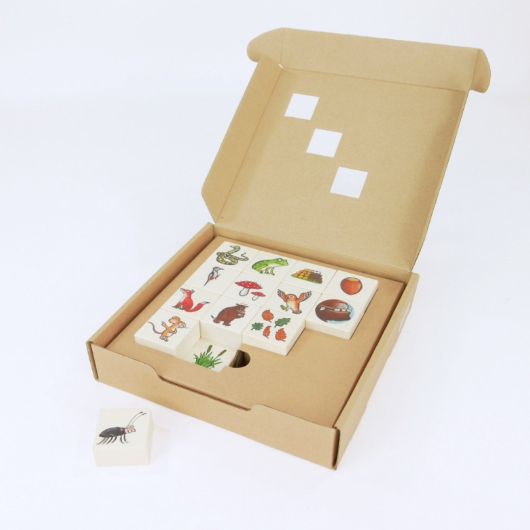 Help little ones to read with these two-sided alphabet blocks. Images and example words have been taken from the world of the Gruffalo and beautifully printed on smooth wooden blocks. Build them, stack them or join them to make new words.