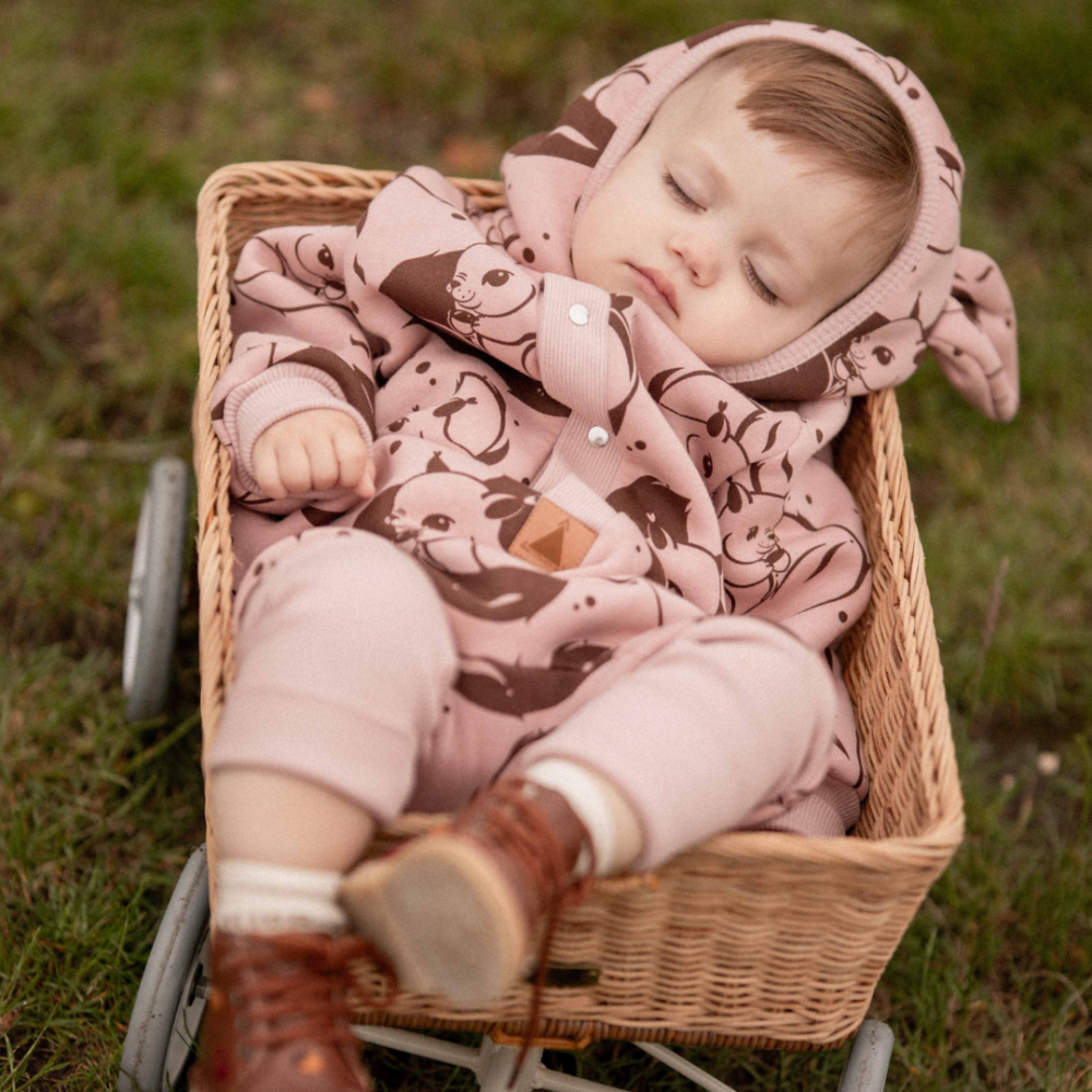 Dásamlega þægilegur og góður heilgalli sem stækkar með barninu. Með hettu úr mjúku efni. Hettan er með krúttlegum eyrum. Mjúkt flísfóður að innan. Þessi galli er úr þykkari efni og hann er fullkominn í vetur.