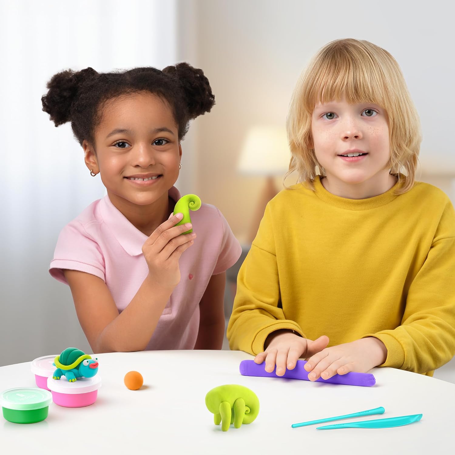 Colorful modelling air-dry clay, 15 cans with fun interactive app for kids 3 years +