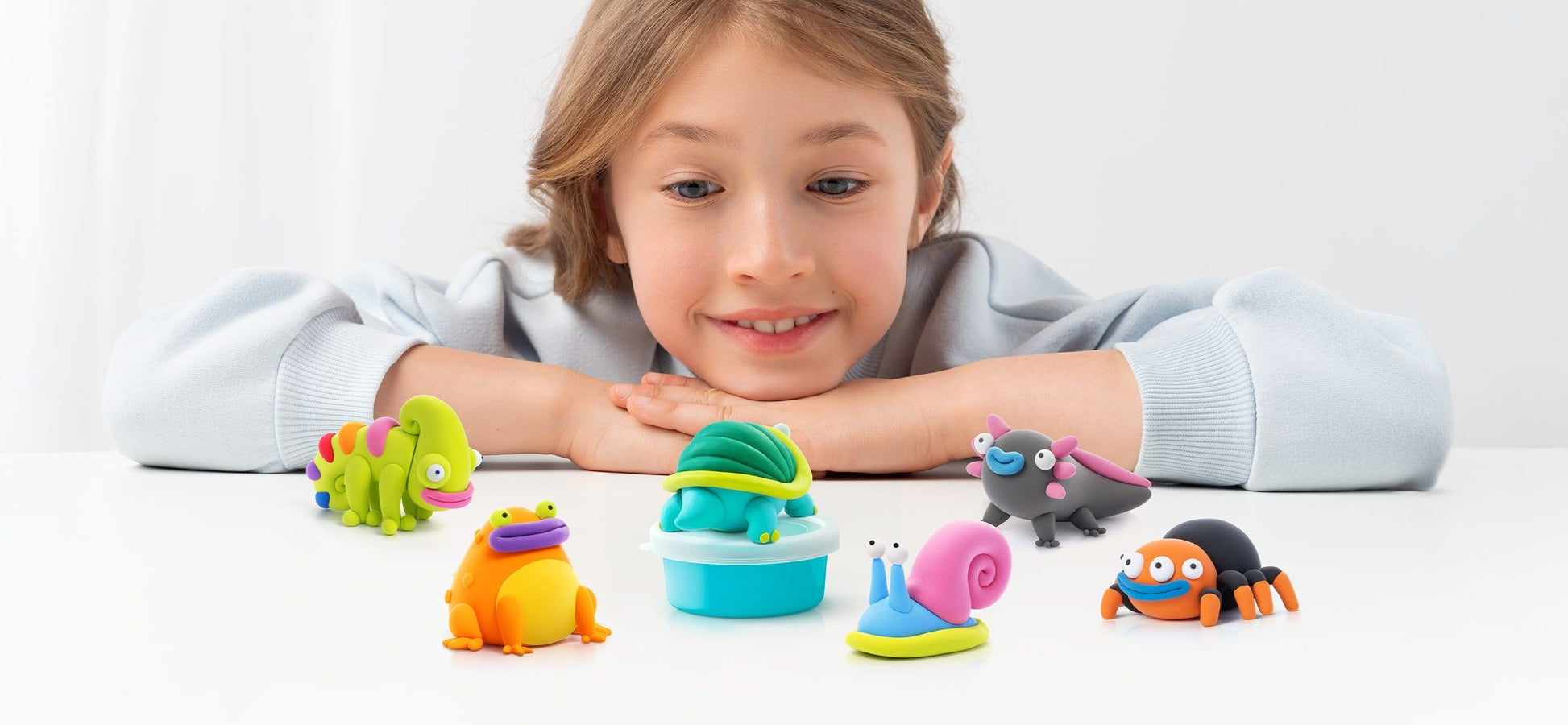 Það að móta Hey Clay fígúrur þroskar ímyndunarafl barna, fínhreyfingar og sköpunargáfu.