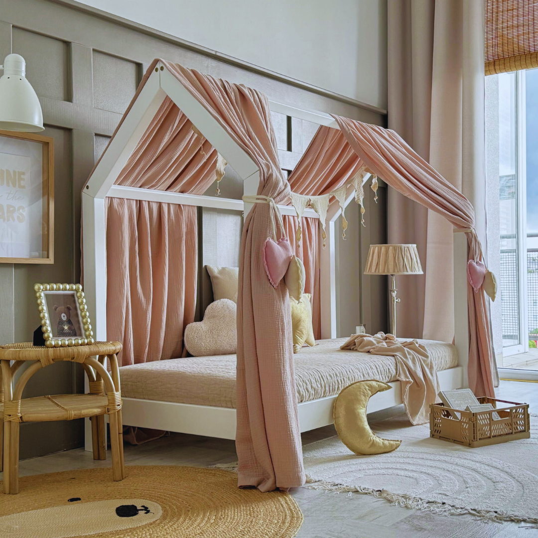 Falleg himnasæng frá Latula úr 100% lífrænt vottaðri muslin bómull sem andar vel. Býr til notalega stemningu yfir húsrúmi barnsins. Falleg viðbót í hvert barnaherbergi.