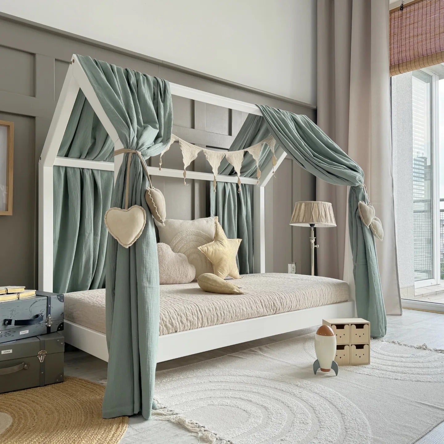 Falleg himnasæng frá Latula úr 100% lífrænt vottaðri muslin bómull sem andar vel. Býr til notalega stemningu yfir húsrúmi barnsins. Falleg viðbót í hvert barnaherbergi.