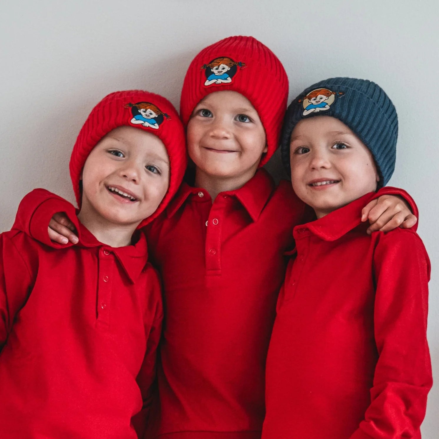 Knitted hat from Geggamoja with embroidered Pippi logo on the front.