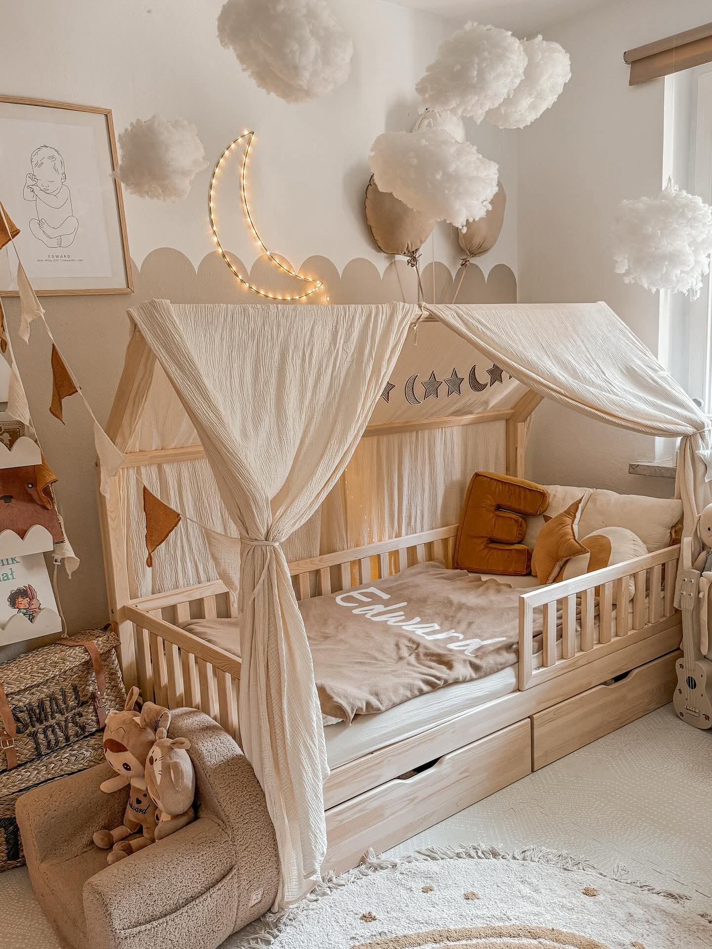 The BIANCO house bed is a Scandinavian style bed. The bed is made of glue-laminated pine wood. Sanded smooth, with rounded shapes. The white beds are varnished with water-based, odorless and ecological paints. The water-based paint is hypoallergenic and safe for children. The natural wood version is the non-treated (unprotected) wood option.
