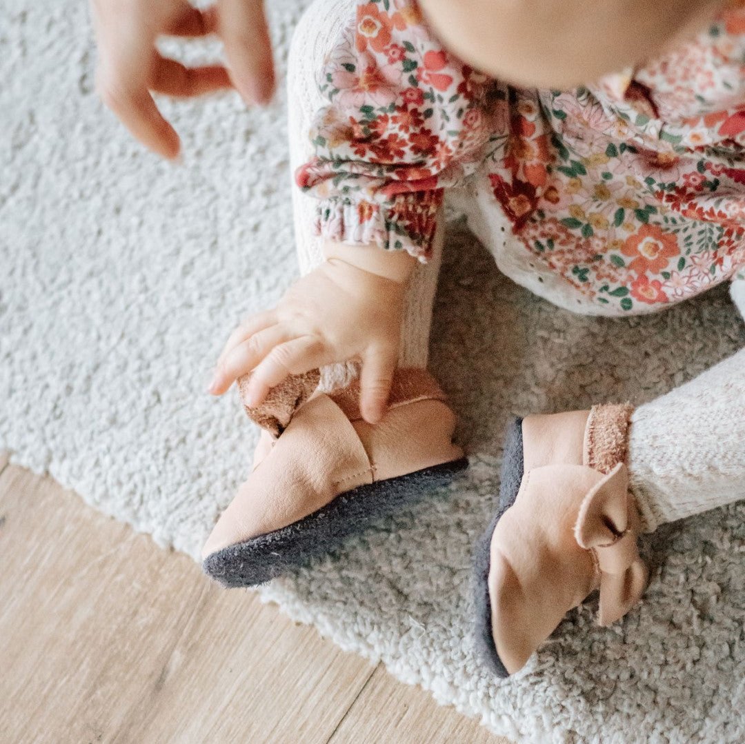 Super comfortable baby shoes, ideal for crawling, first steps and children up to 3 years old, with cute design that always cheers up your little ones. Soft soles support natural feet development and barefoot walking. Made of genuine premium, vegetable-tanned leather, safe for child’s bare feet. Loved by girls and boys.