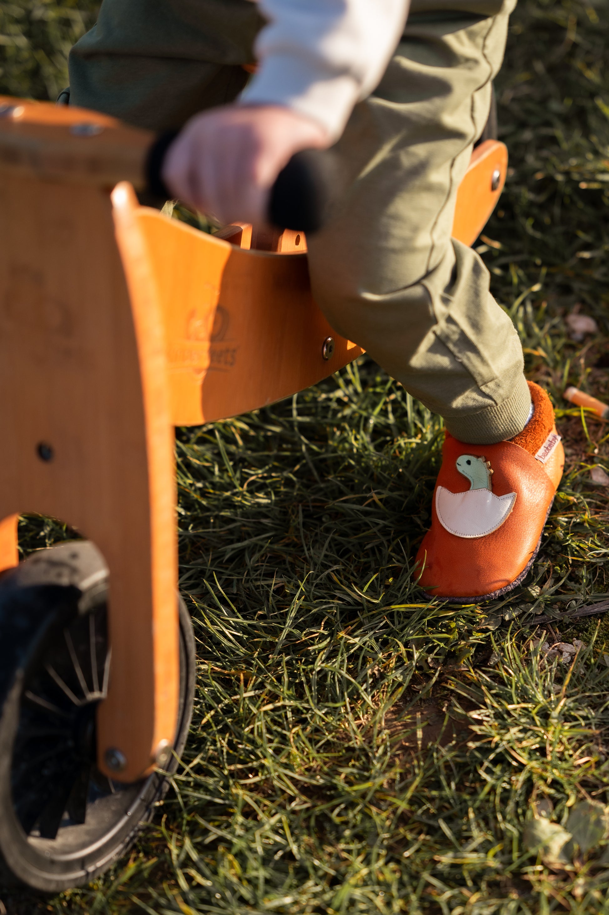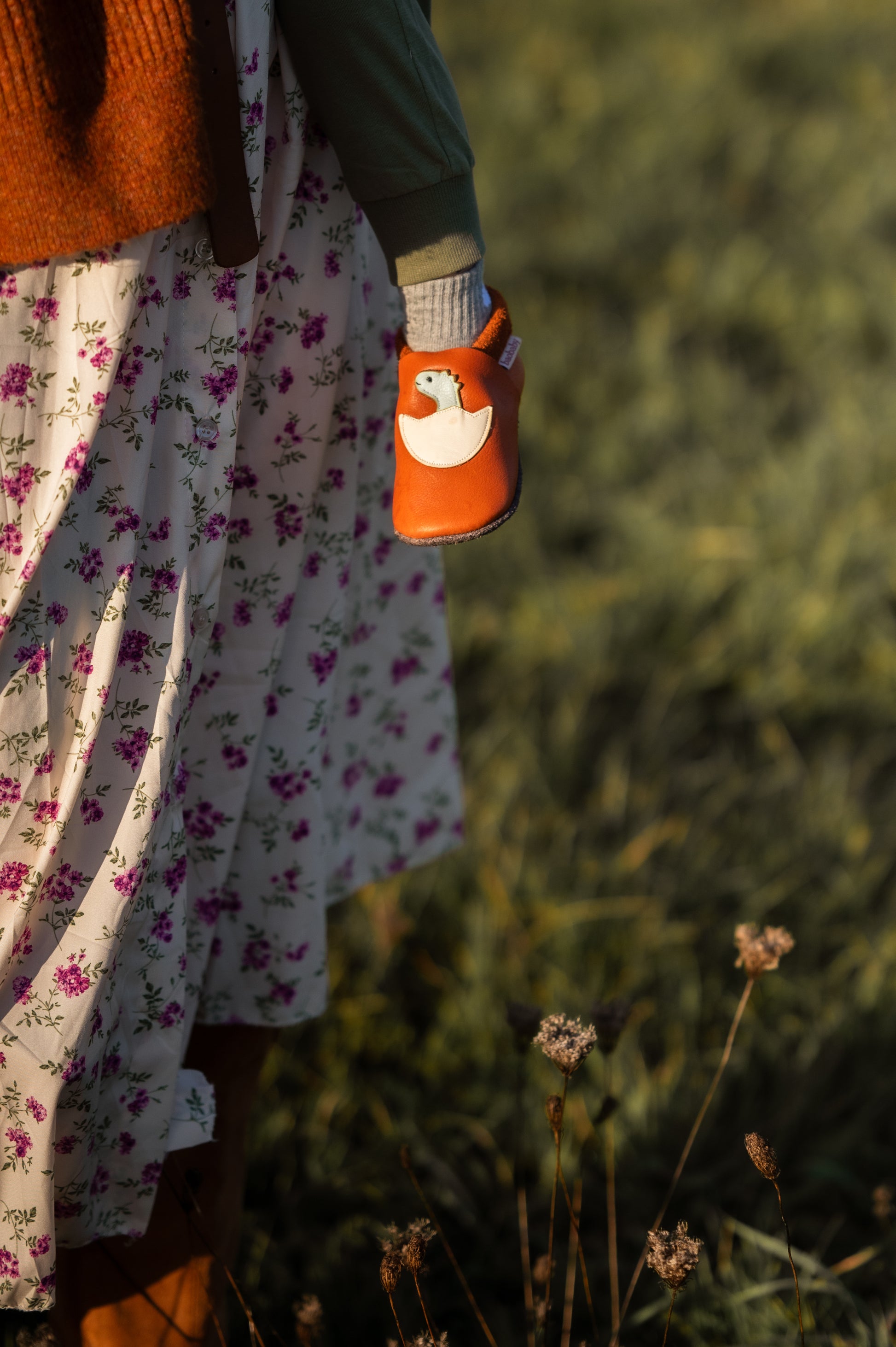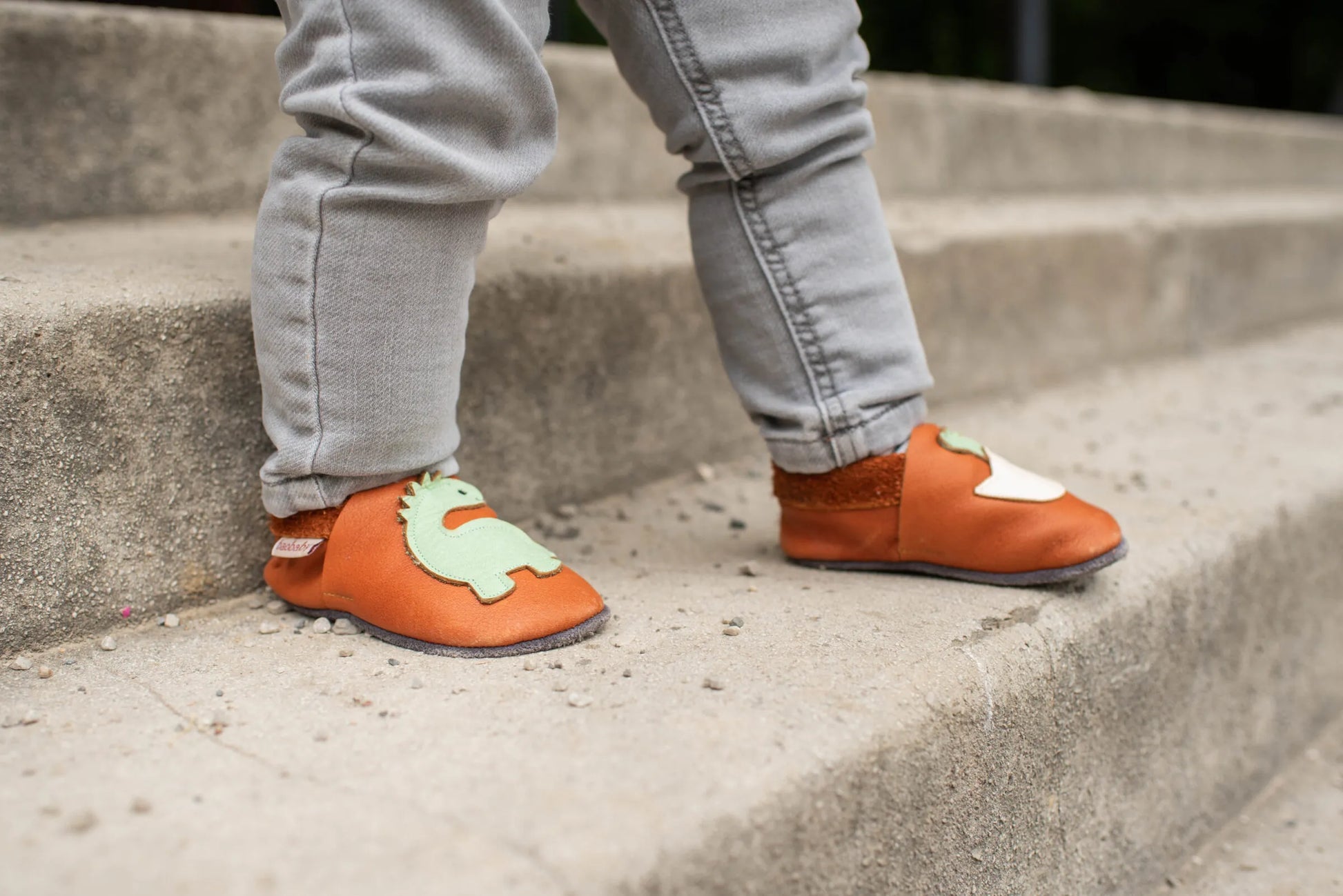 Super comfortable baby shoes, ideal for crawling, first steps and children up to 3 years old, with cute design that always cheers up your little ones. Soft soles support natural feet development and barefoot walking. Made of genuine premium, vegetable-tanned leather, safe for child’s bare feet. Loved by girls and boys.