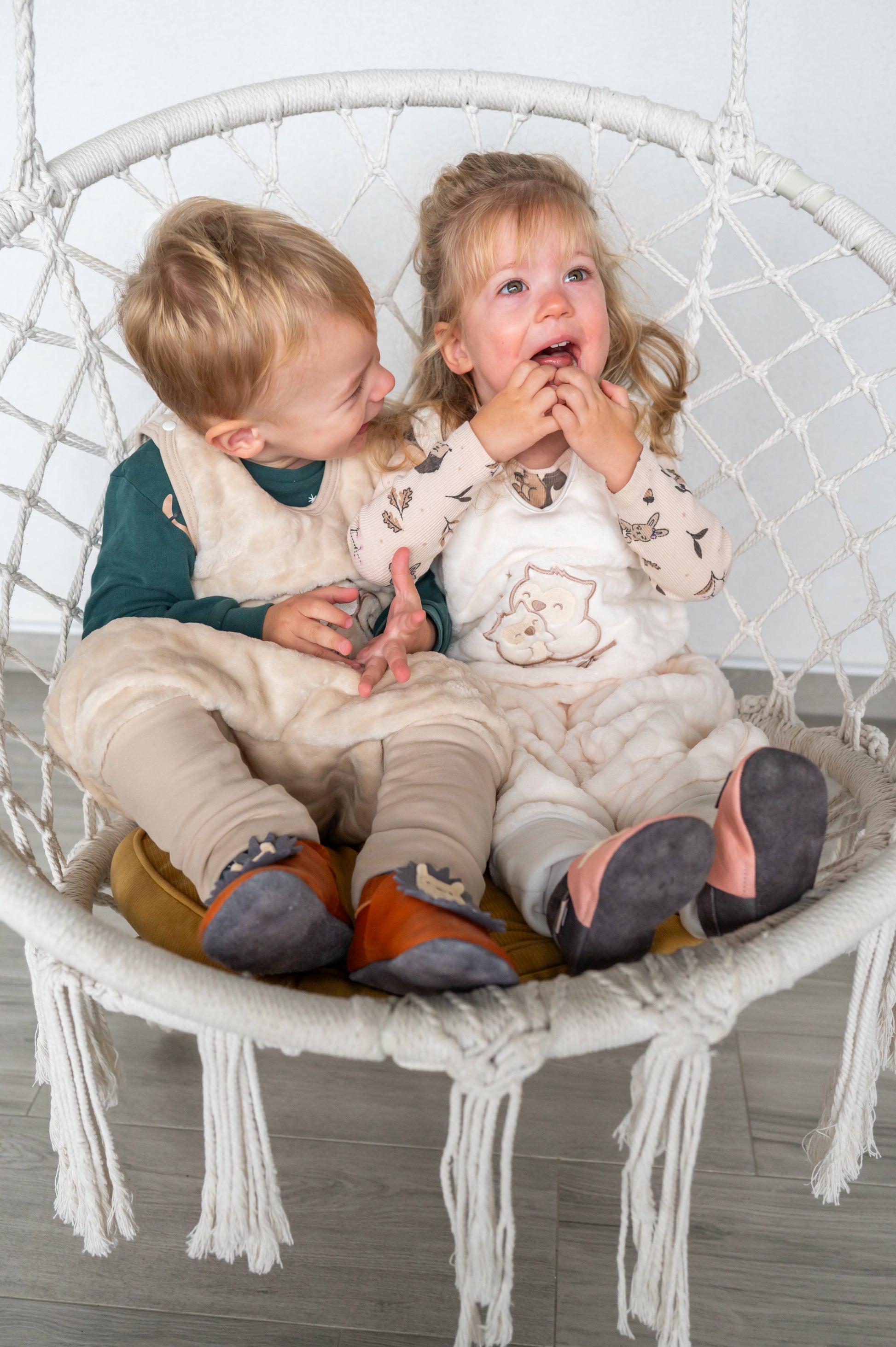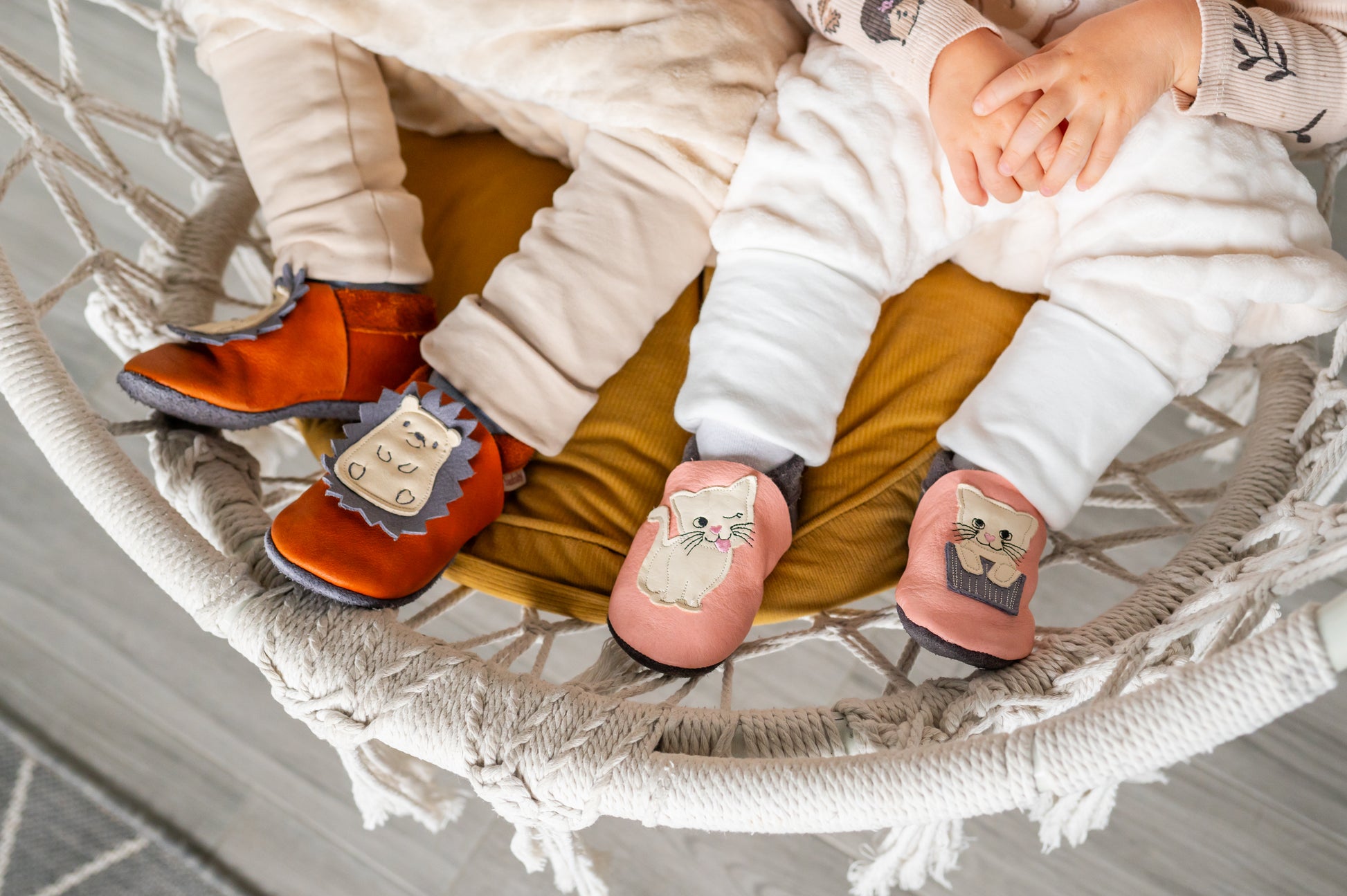 Super comfortable baby shoes, ideal for crawling, first steps and children up to 3 years old, with cute design that always cheers up your little ones. Soft soles support natural feet development and barefoot walking. Made of genuine premium, vegetable-tanned leather, safe for child’s bare feet. Loved by girls and boys.