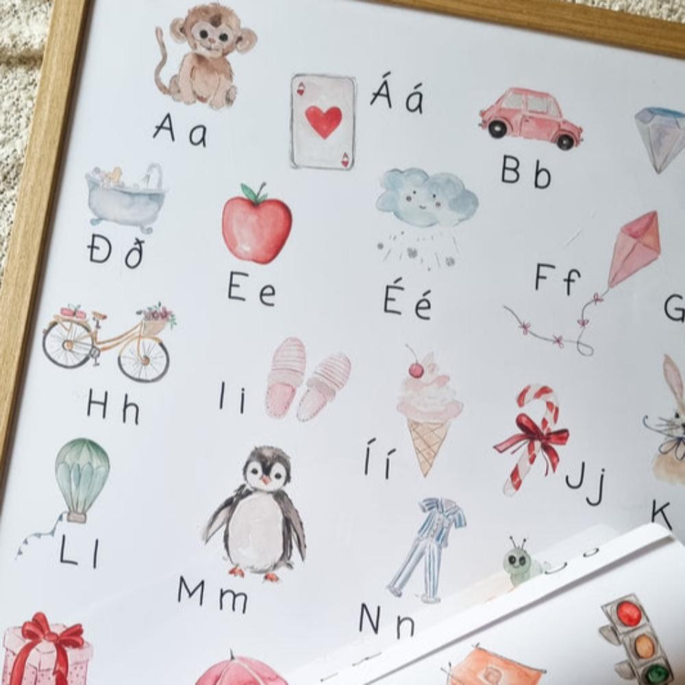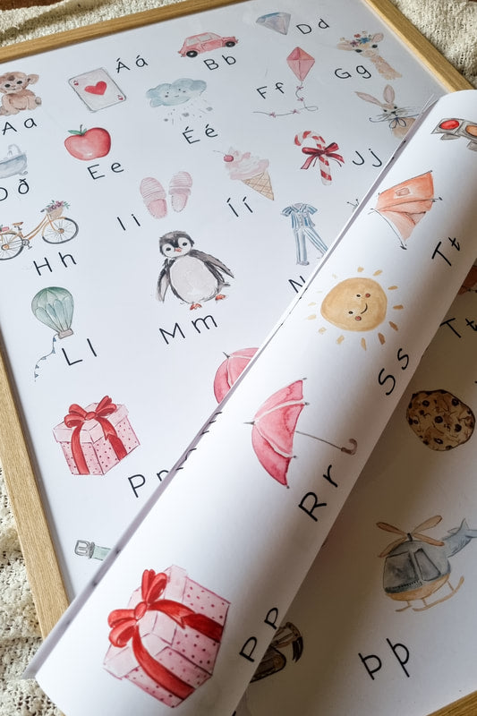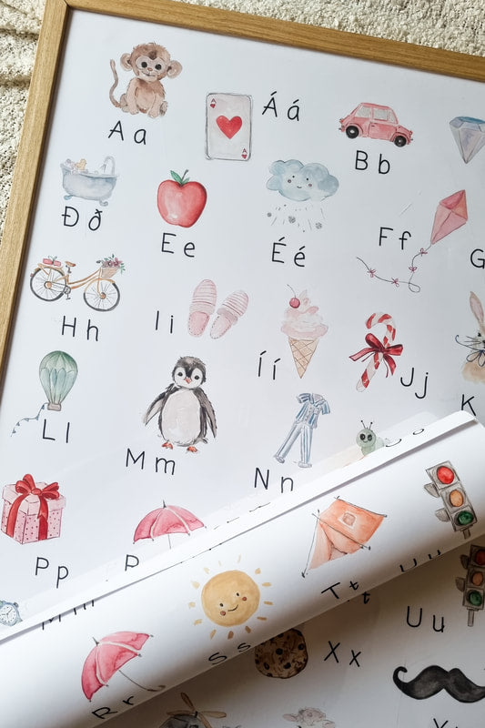 Safrófsplakatið er frábært fyrir börn til að læra stafina ásamt því að hafa þann tilgang að fegra heimilið. Kemur án ramma.