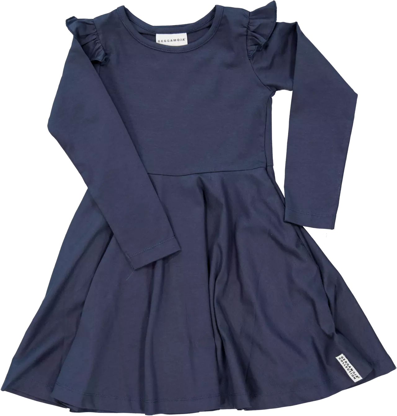 Dress with vide skirt part. Long sleeved. Flounce at chest part.