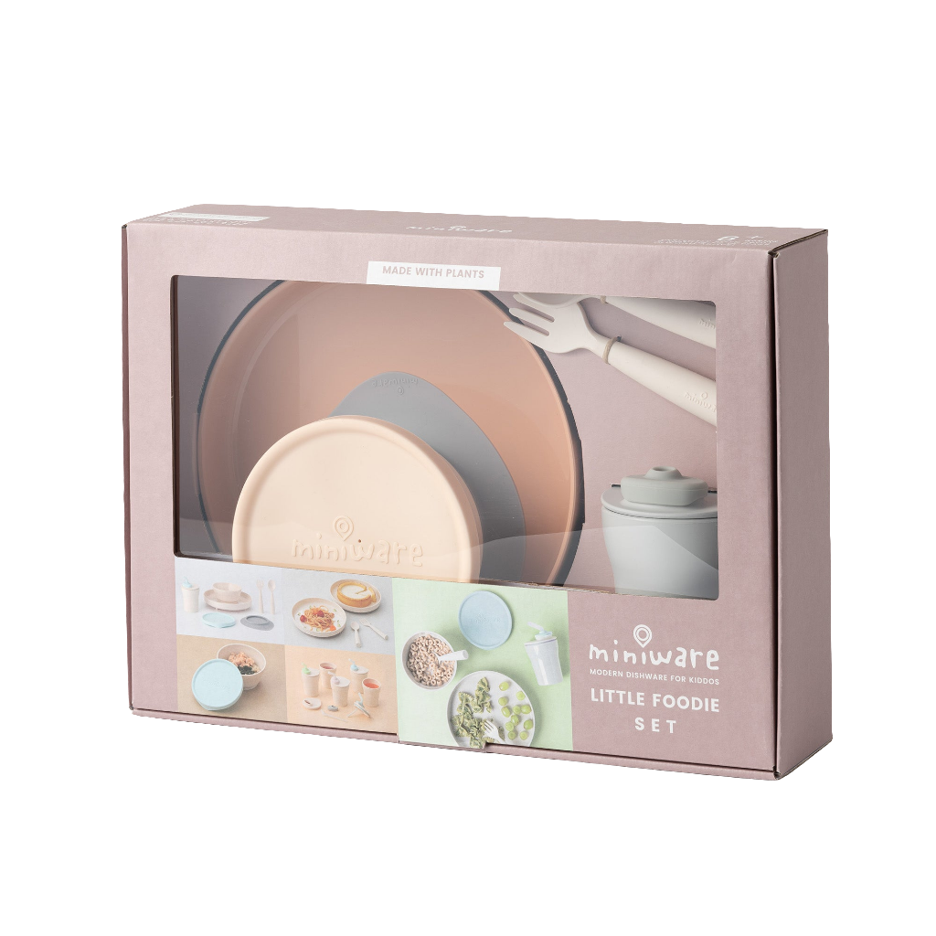 This complete Miniware combo set provides the perfect start for minis new to self-feeding. Made from durable materials, with detachable suction-foot, silicone accessories and unique “easy-scoop” angles, Little Foodie is created to help kids learn essential skills while reducing accidents and spills. The waterproof lid seals securely to our cereal bowl, making it ideal for transporting messy foods or storing leftovers. Perfect both as a gift or for your own messy minis!