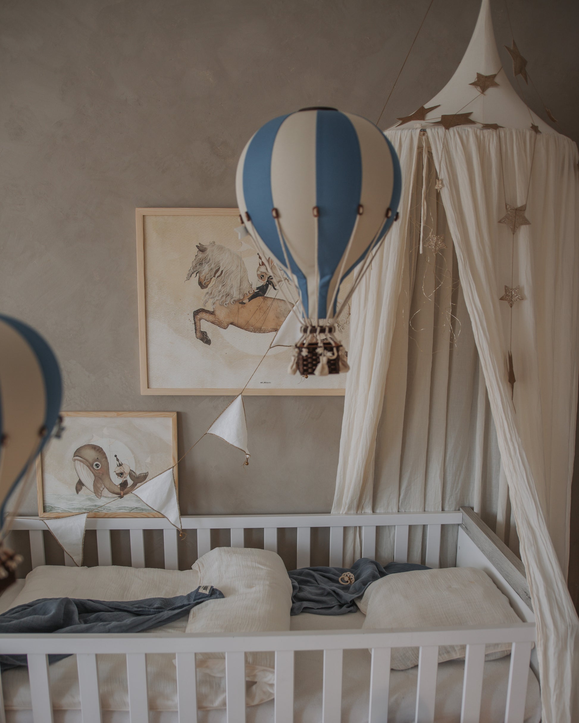 Super Balloon is a Polish based brand, that make the most dreamy air balloons that are the perfect wall decoration in the nursery or kids room. Folded by hand with great care gives balloon its own character. The rich colors allow you to adjust the balloon to almost any type of interior. With the Super Balloon decorative balloons, you can create a fairytale arrangement in every nursery or kids room.