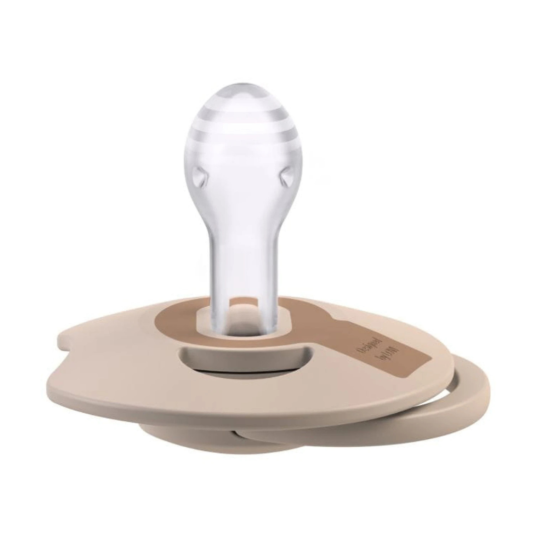 Soother shield has a special cutout to facilitate breathing through the nose and swallowing saliva, just like with the breast. Contoured shield adheres as little as possible to the child's skin, which facilitates free air flow and reduces the risk of skin irritation.