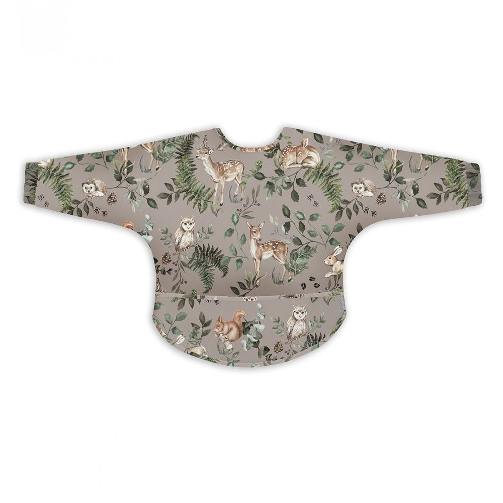 Waterproof bib made with soft, lightweight, water-repellent fabric from 100% recycled polyester. Practical, perfect for eating, with a pocket at the bottom to catch any dropped food from your little ones hands.