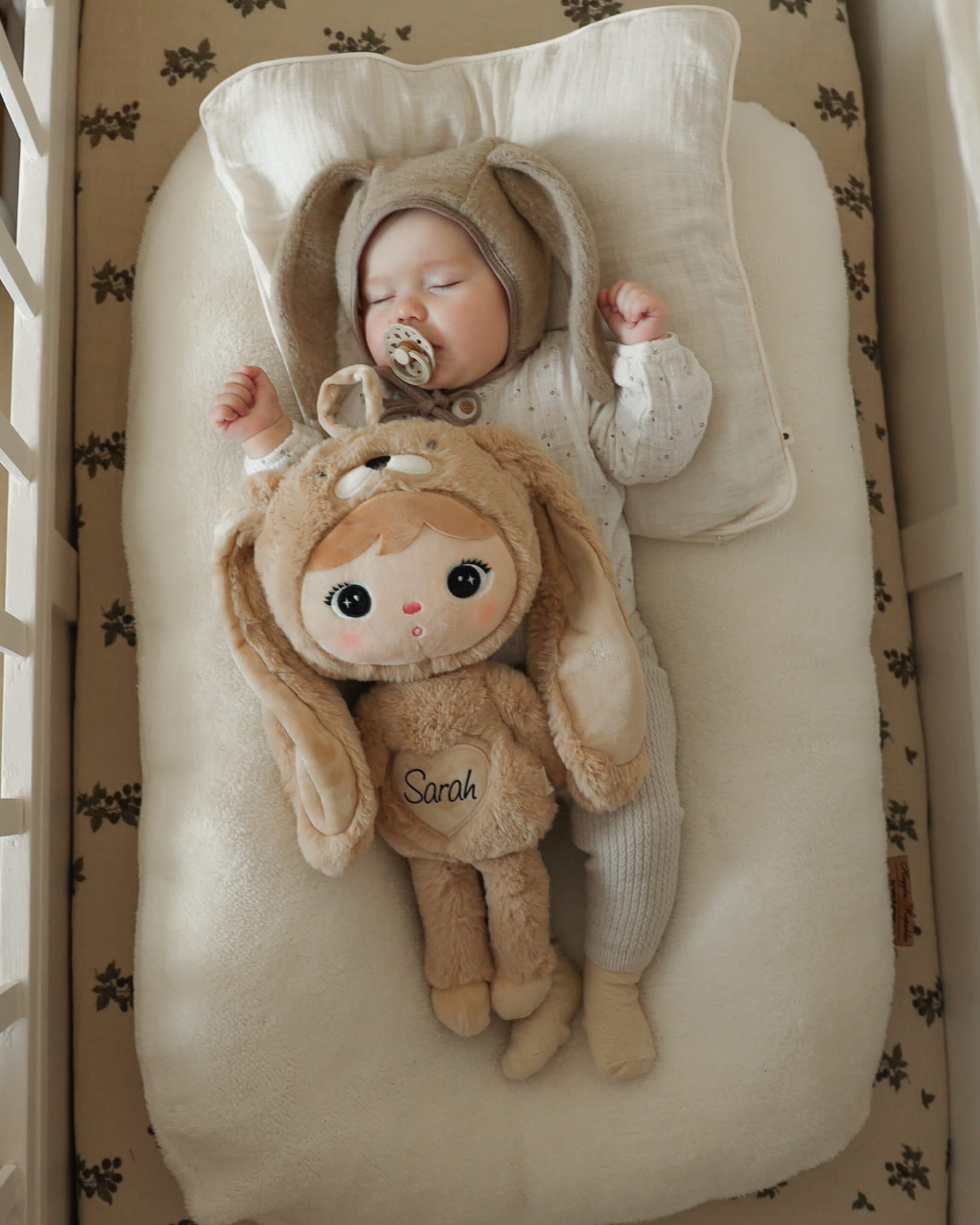 MeToo Bunny is a very sweet cuddly toy made of very soft plush material that no child can resist! It is perfect as a first cuddly toy for a baby to fall asleep with and is fantastic for playing with for older child. The bunny has large eyes and eyelashes and long ears, The plush toy is light and handy despite its size and it has a hanger at the top so it can be easily grabbed in little hands or hung on the wall as a decoration in a child´s room.