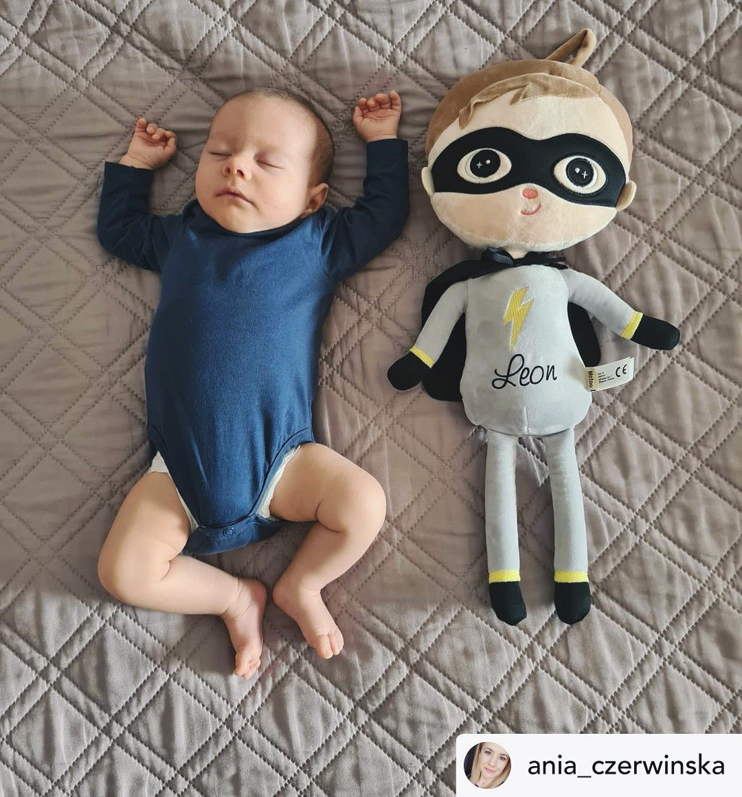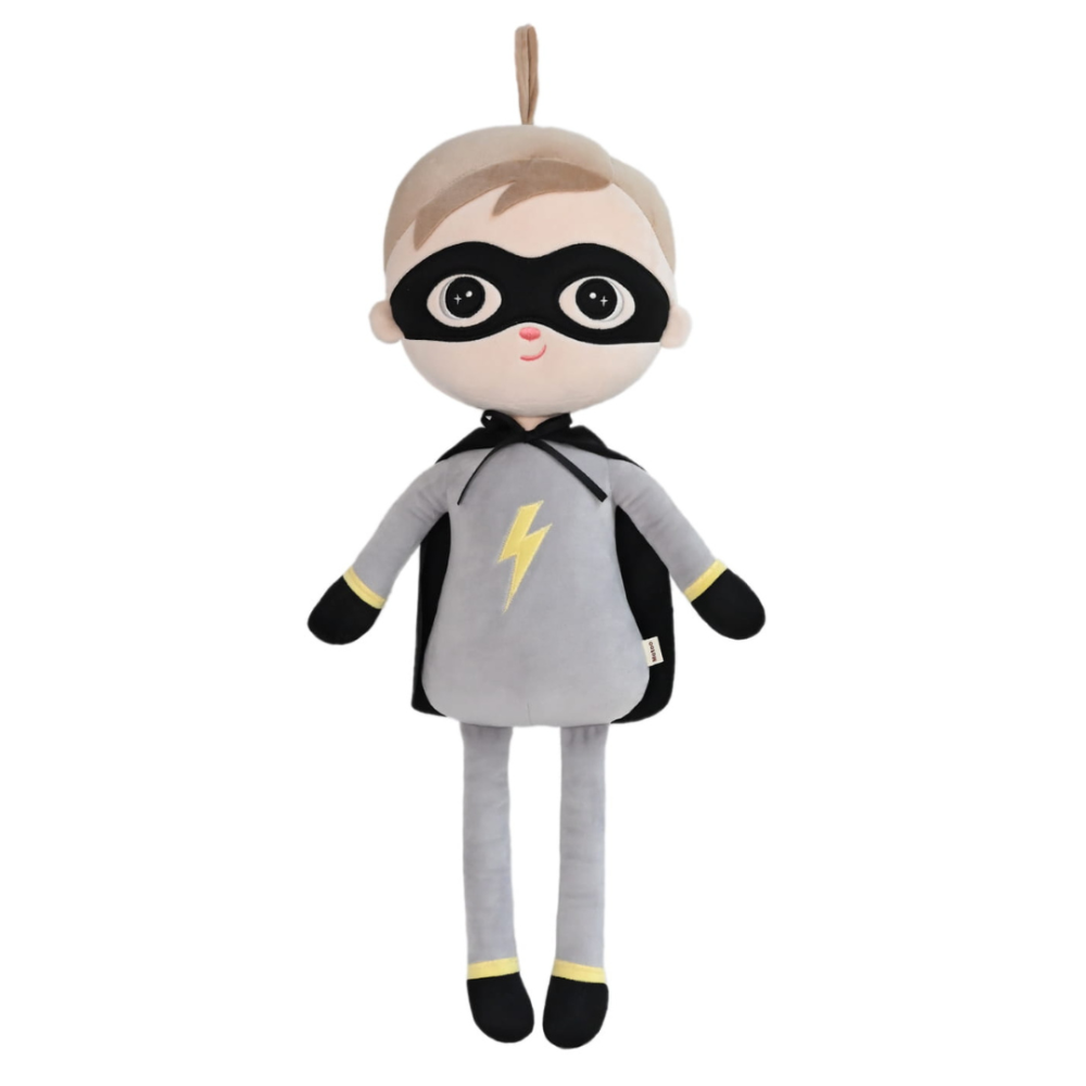 Metoo Dúkka Super Boy 50cm is a fantastic option for boys. The cuddly toy is made of a very soft and plush material. It has interesting elements for boys, such as a mask, a cape and a lightning bolt, which are perfect for role-playing, e.g. Superhero. Great as a gift for all occasions. The doll has a hanger attached at the top which enables a child to easily grab the doll or to hang it as decoration.