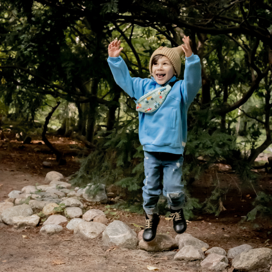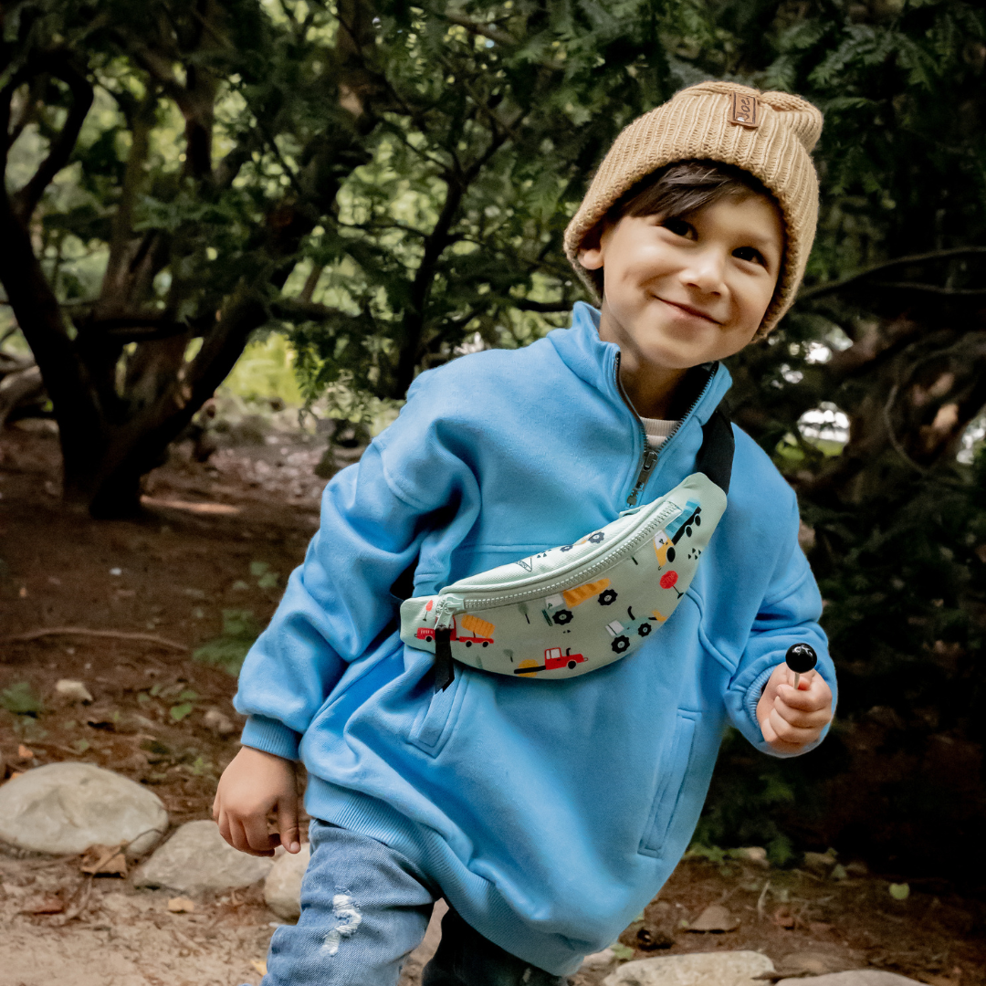 Flott mittistaska fyrir leikskólabörn úr vatnsfráhrindandi efni. Með 2 hólfum og smellufestingu.