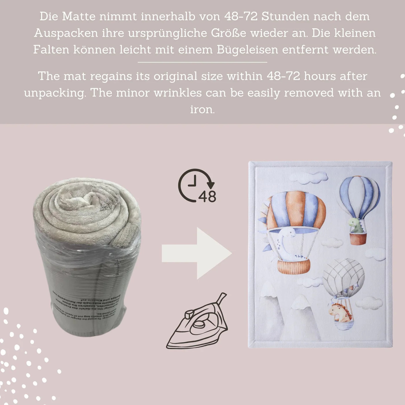 NOTE! Premium memory foam is 2 cm thick and returns to its size faster compared to cheaper alternatives (within 1-2 days). The play rug is delivered folded and may need to be ironed a little bit to remove any minor wrinkles. The compressed packaging saves space during transport and reduces carbon emissions.