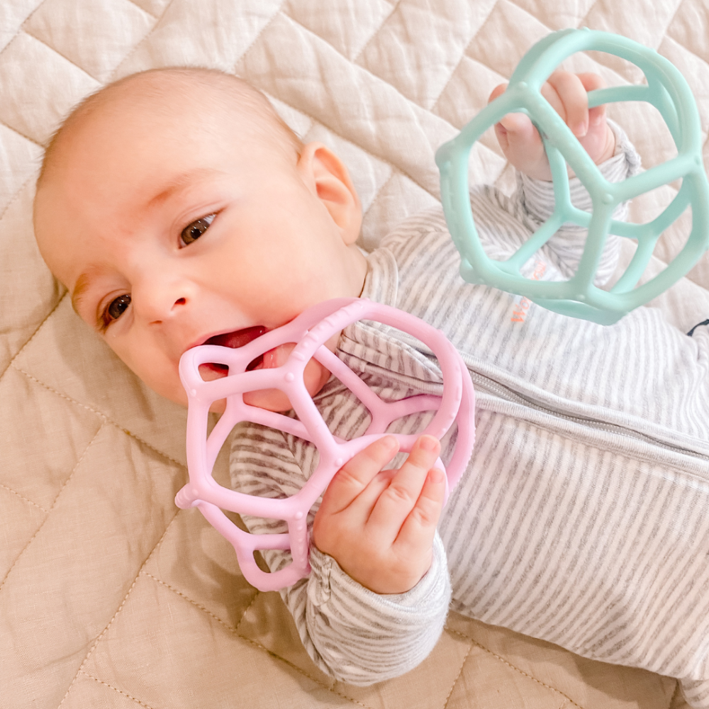 Free from any nasty chemicals, the Sensory Ball is made from food-grade silicone so babies can chew on the soft, safe surface to soothe their aching gums. The open frame design allows them to easily grab the Sensory Ball and bring it to their mouths when any toothy troubles arise.