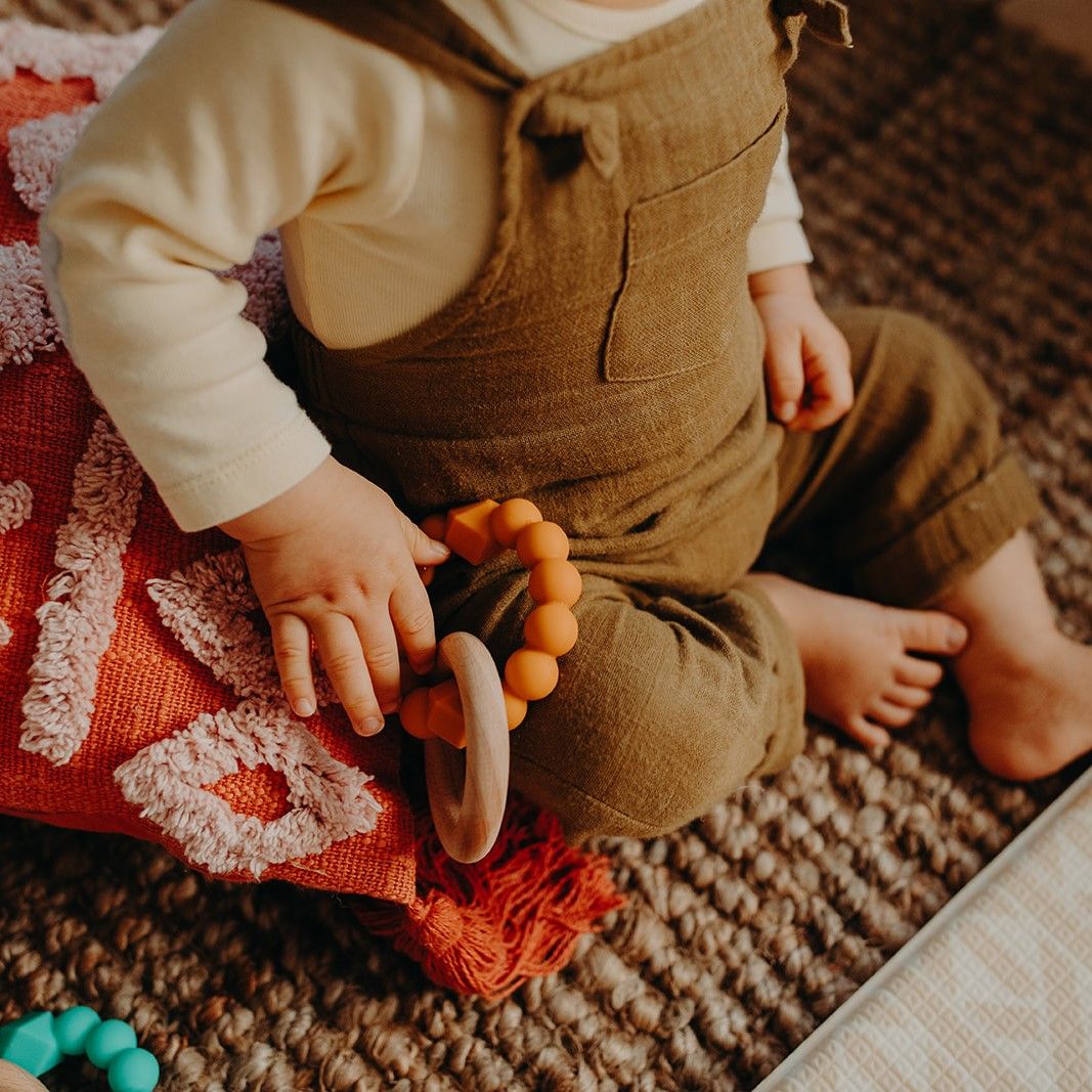 The silicone ring is created in one continuous mould to ensure the highest safety standards for your baby as they explore the unique shapes with their fingers and mouth.