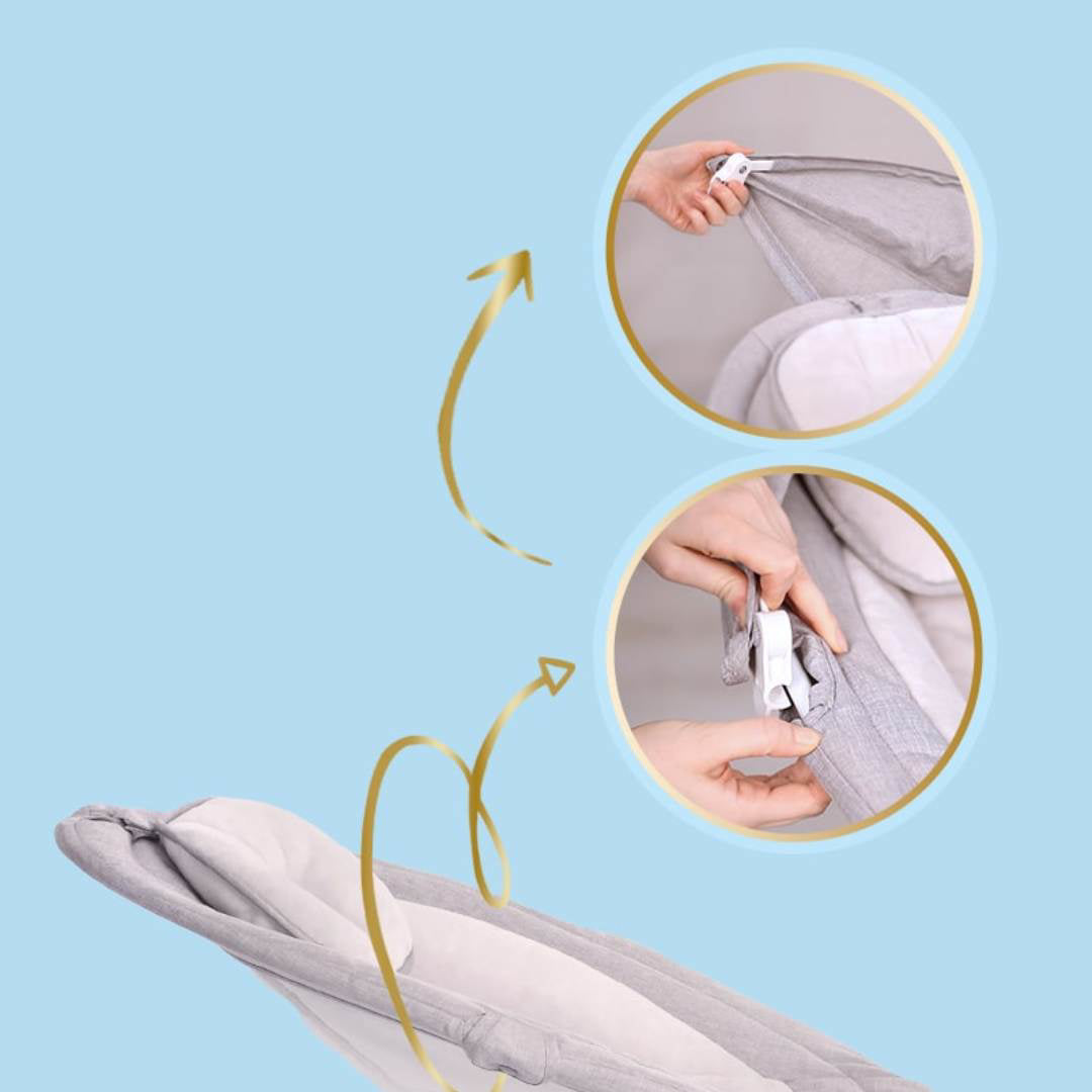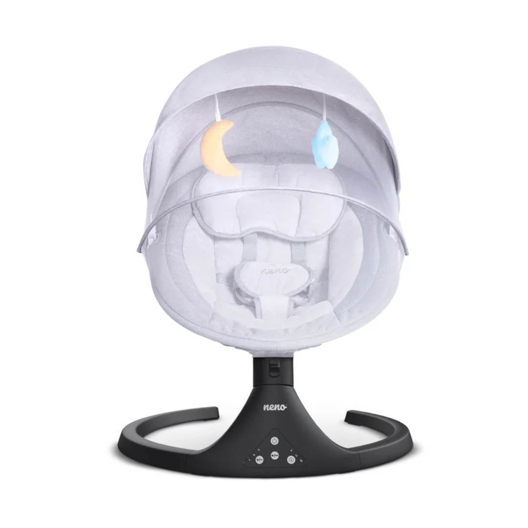 Neno Aurora is designed to be used from the baby’s first day. The modern electronic rocker is an alternative to natural swinging. It uses a pendulum movement with 5 speeds to soothe and calm your baby. Its main advantages are its changeable design (removable canopy/cover, removable toys/pillow), pre-programmed lullabies and BT pairing with other devices.