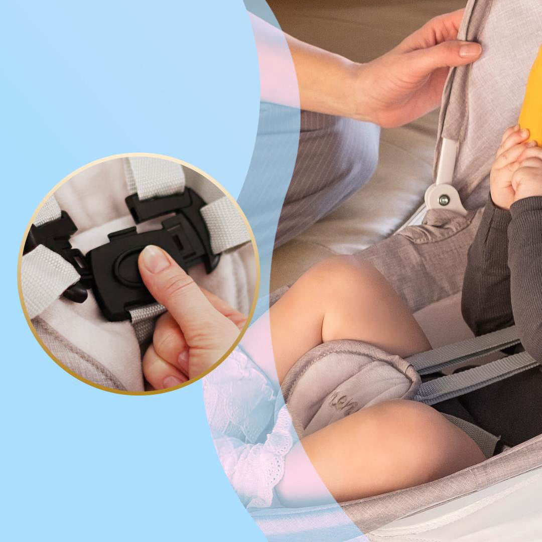 Worried about a busy toddler going overboard? Not at all! The sturdy five-point harness with crotch strap, surrounded by a soft cover, ensures that your child is stable and secure in the seat.