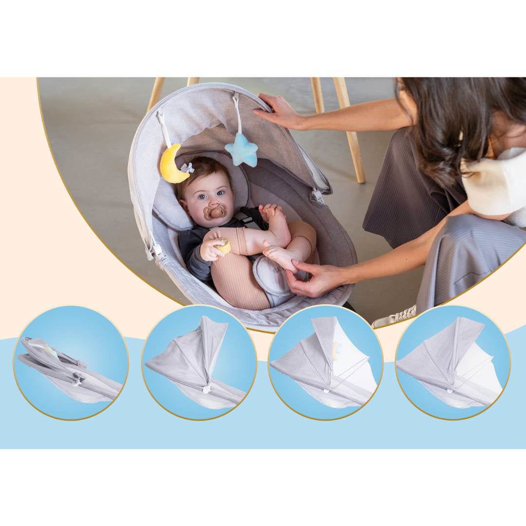 The Neno Aurora is perfect for when you are sitting on the patio or in the garden on a warm evening and want to keep an eye on your little one. The rocker has a mosquito net attached to the canopy to prevent contact with annoying mosquitoes and flies.