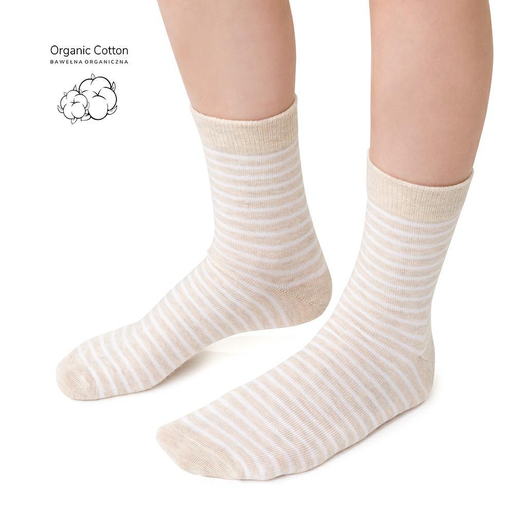 Kids´ socks made of organic cotton. Organic cotton is gentle to the baby's skin, hypoallergenic and free from harmful substances. The socks provide excellent air circulation, preventing overheating of little feet. The material is elastic and delicate and perfectly adapts to the child's feet not causing any pressure on the legs.