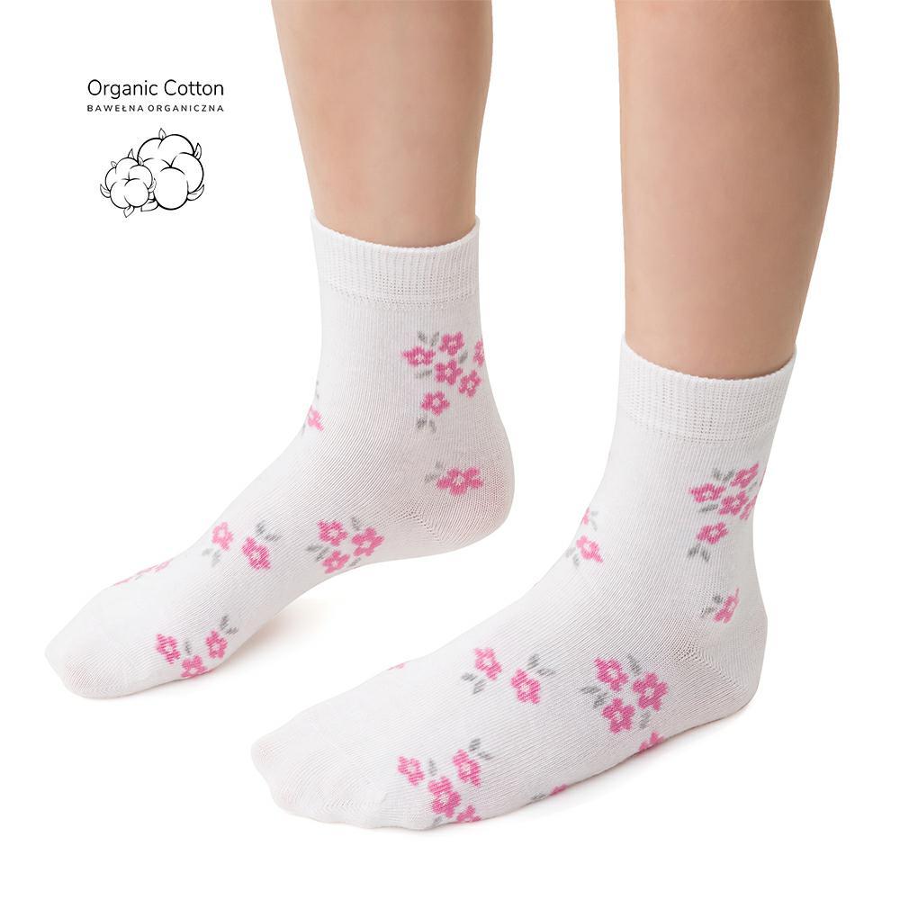 Organic Cotton Sokkar - White Flowers st. 26-34