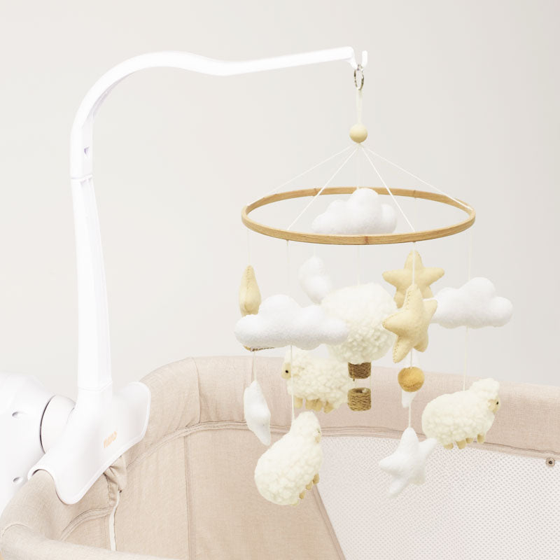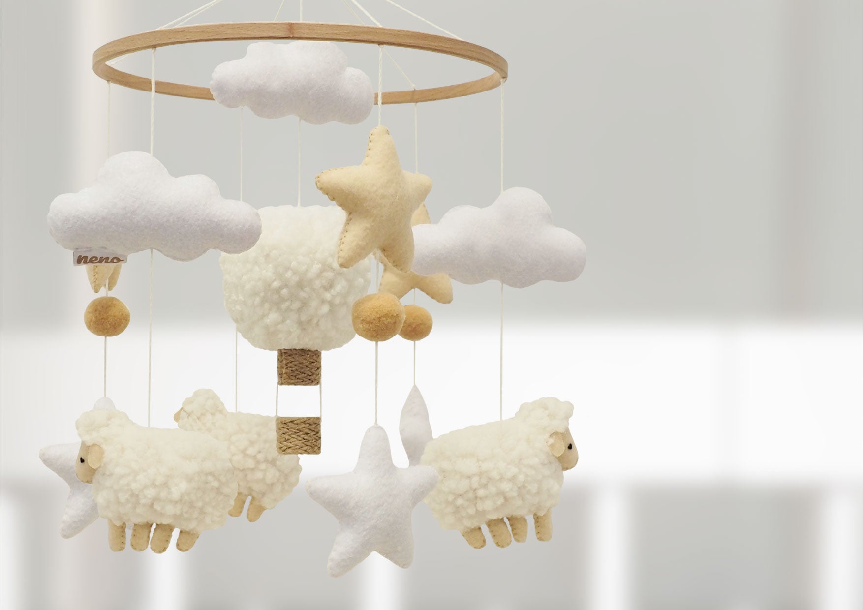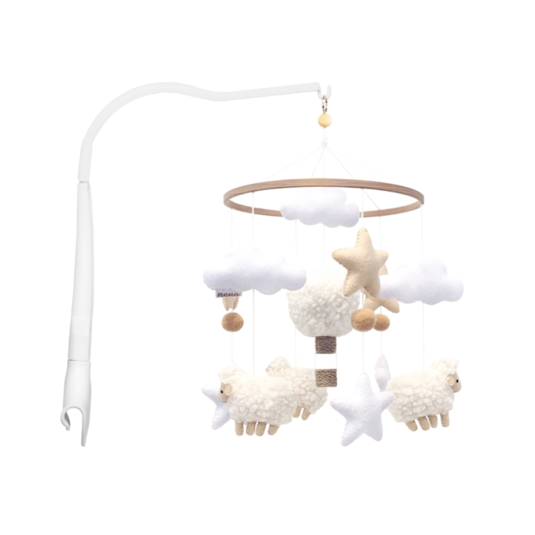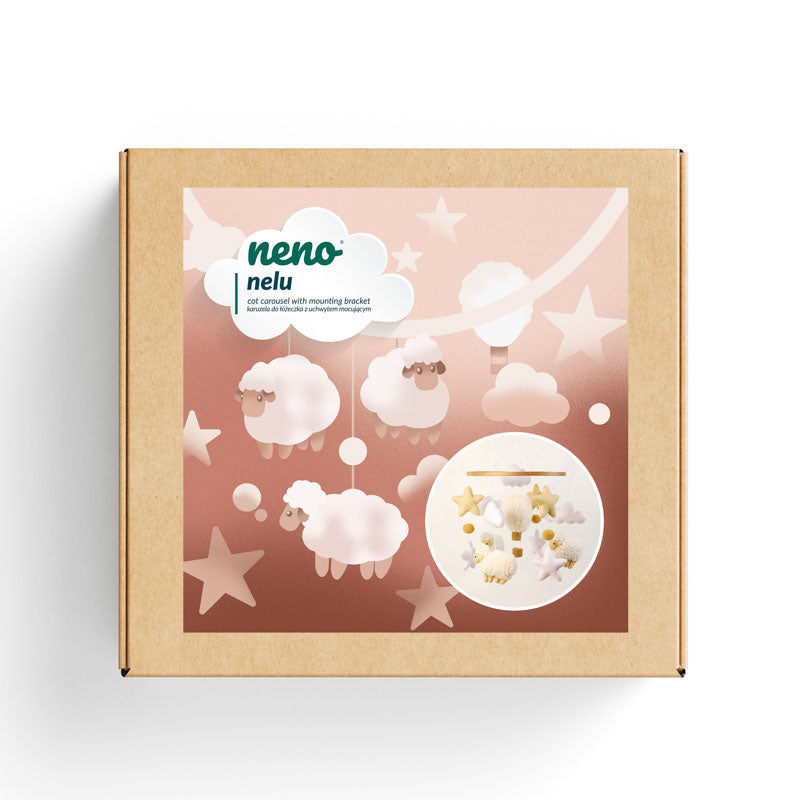 The Neno Nelu carousel combines modern design with functionality to support baby's sensory and motor development. The handmade pastel-coloured mascots soothe and encourage play. Easy to assemble and sturdy, it is perfect for any children's room.