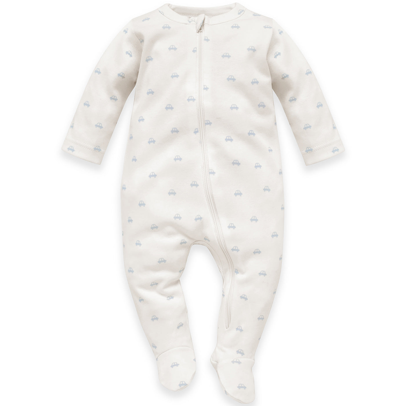 Ungbarna náttgalli úr mjúku bómullarefni með sokkum. Rennilásinn gerir það fljótlegt að klæða barnið úr og í.