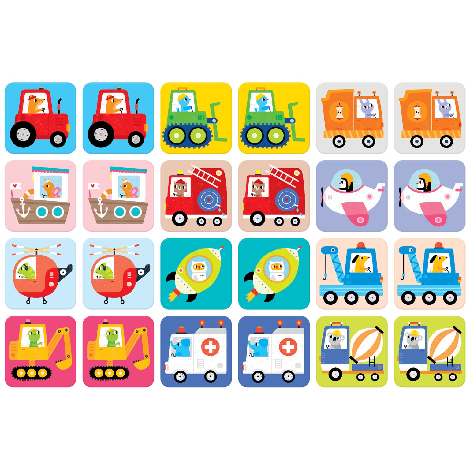 Colorful vehicles are ready to roll! Match loud ambulances, hard-working diggers, ultra-fast rockets and other busy vehicles. This educational set features 24 jumbo and sturdy cards and makes a perfect first memory game.