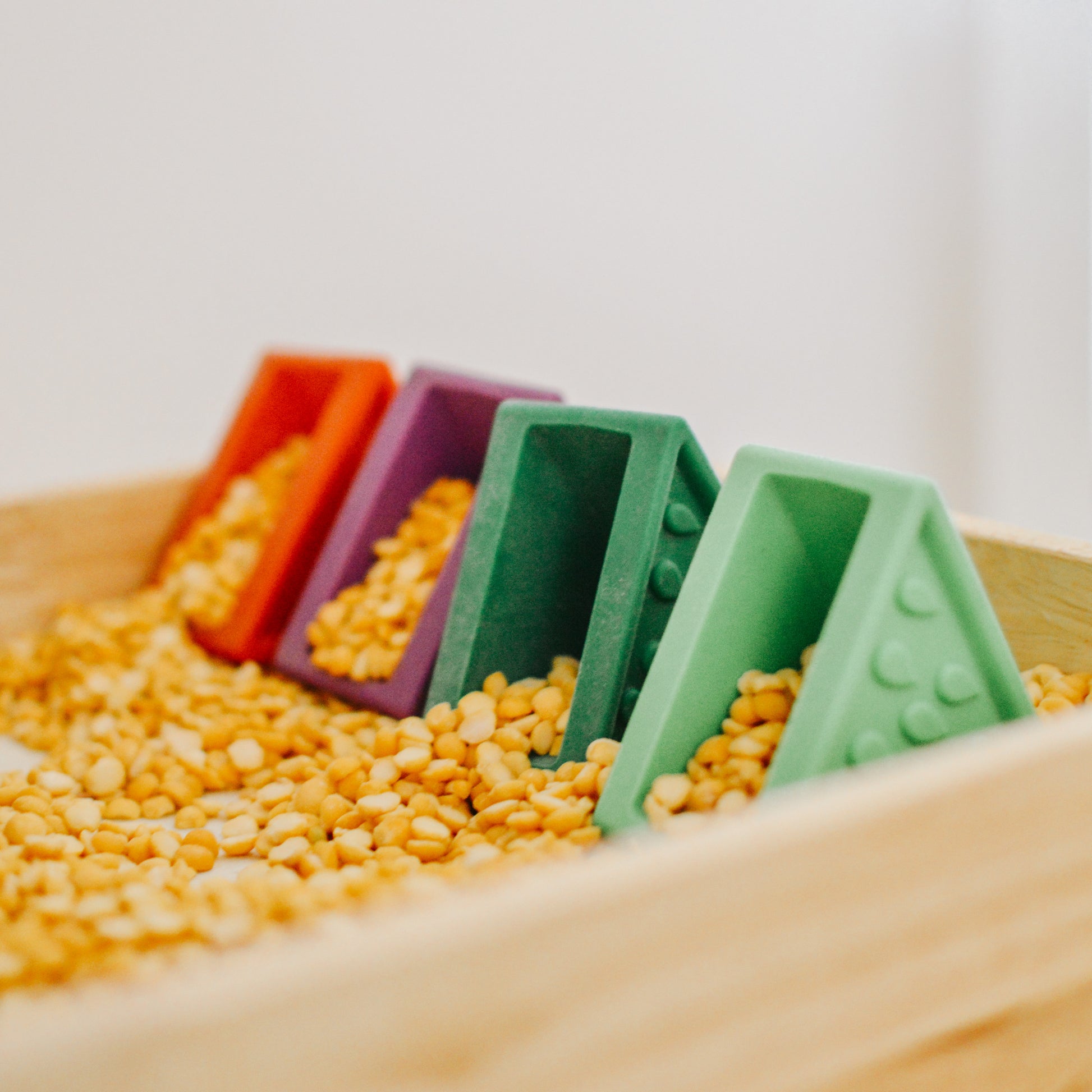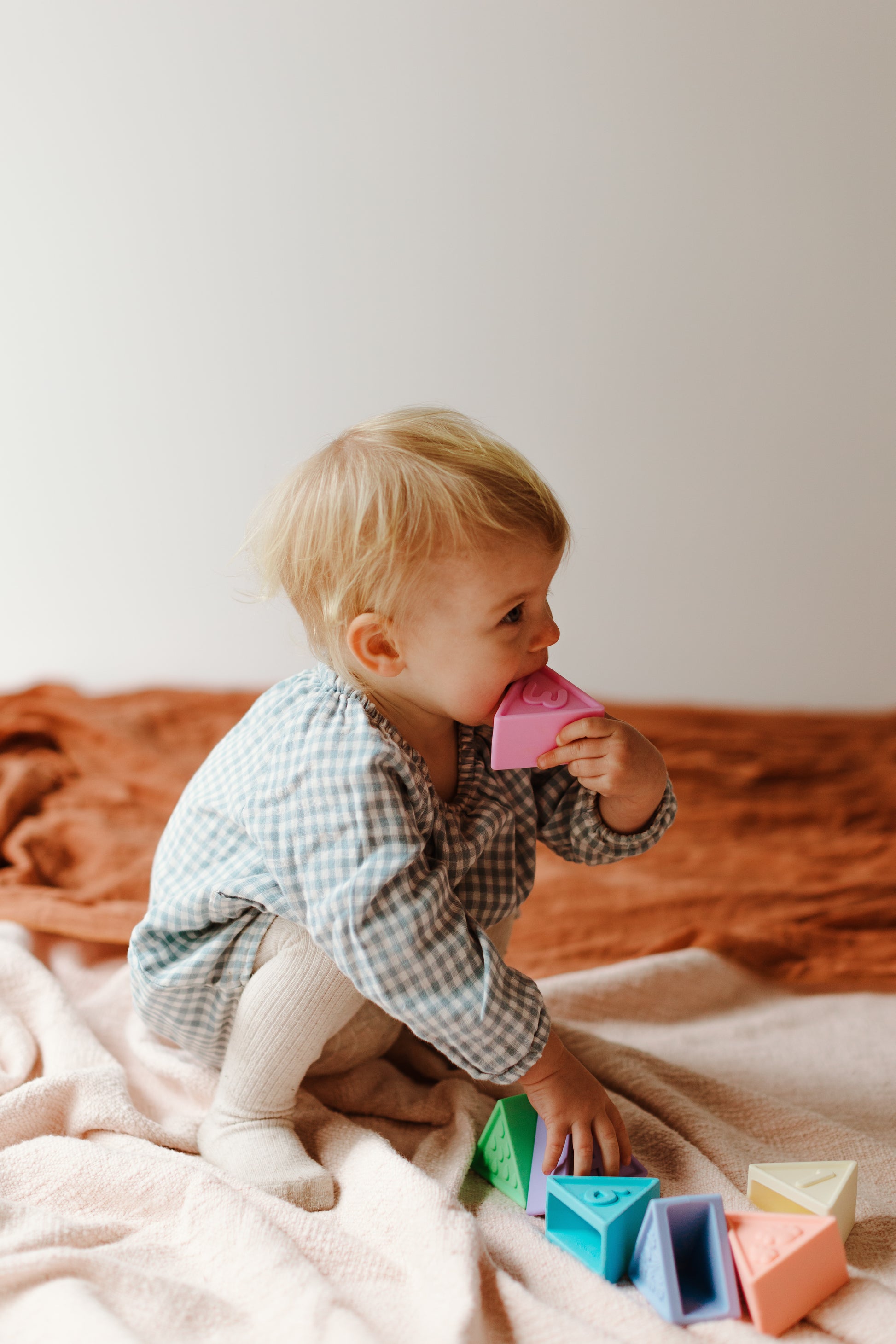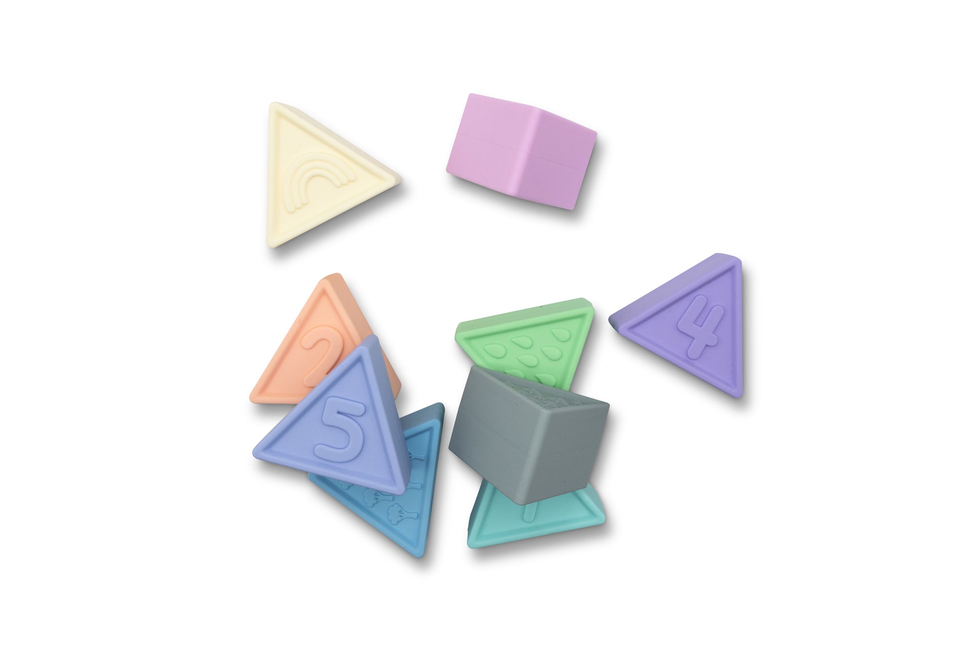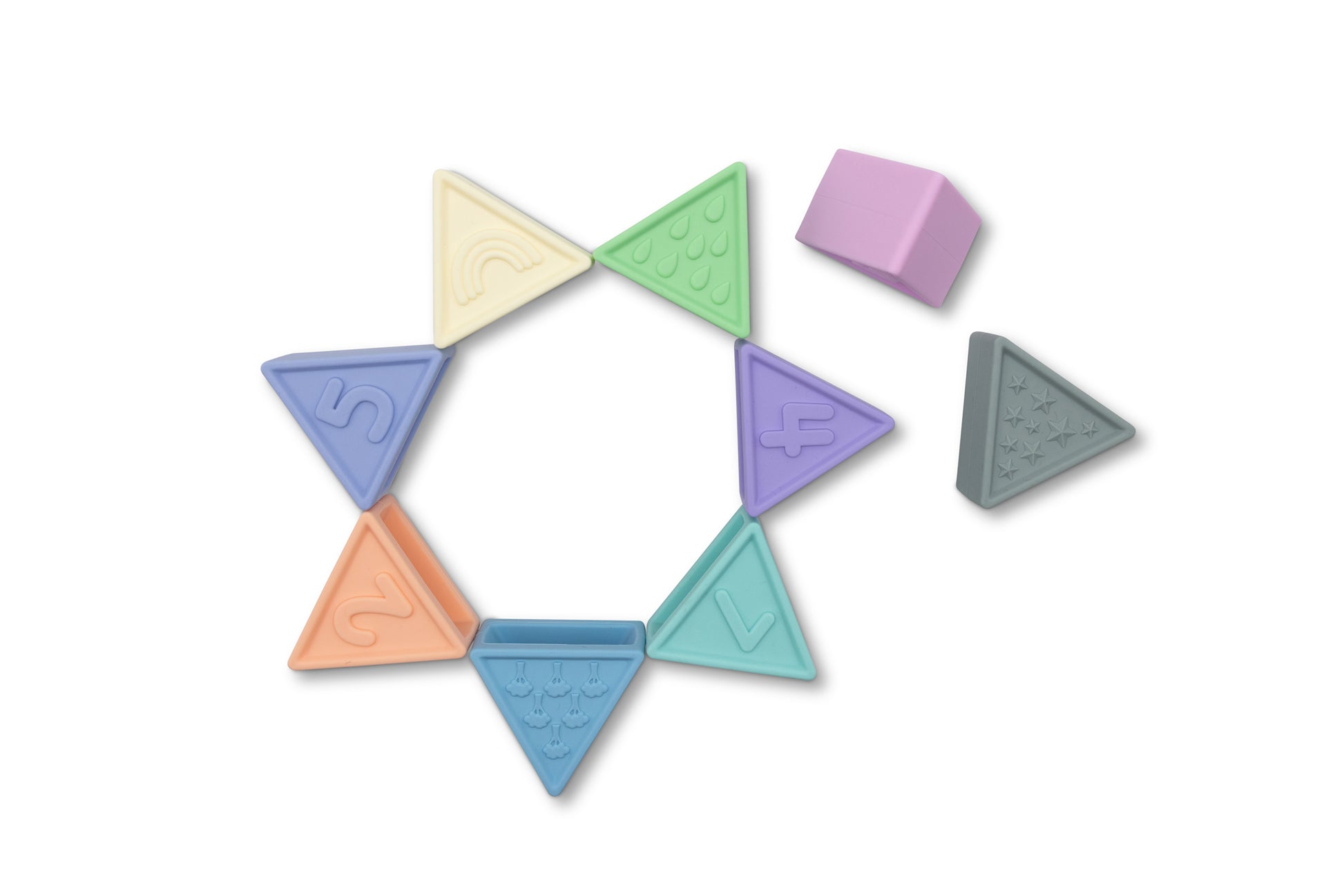 Við kynnum með stolti, Triblox frá Jellystone design. 9 litríkir þríhyrningskubbar, framleiddir úr eiturefnalausu matvælasílikoni sem börn geta notað til að naga, byggja, stafla og læra. Fullkomið leikfang fyrir opinn leik. Hver kubbur er númeraður 1-9 á annarri hliðinni og hefur svo viðeigandi áþreifanlega mynd á hinni hliðinni sem býður upp á margs konar tækifæri til að læra og fræðast. Triblox er frábært verkfæri til að leyfa ungum börnum að efla sköpunargáfurnar og leyfir þeim að stýra eigin leik! Triblox hlaut gullverðlaun Mom’s Choice awards árið 2023.