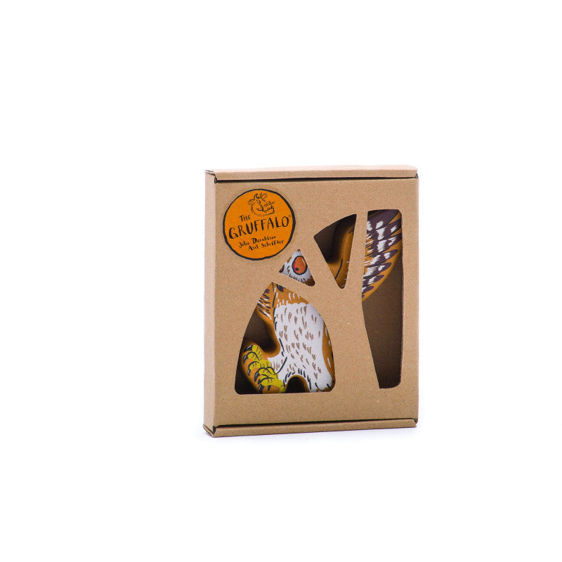 It's a owl, will somebody save the mouse? Relax ... She'll be fine. She is brave and has found a great way to defend herself. When someone attacks her, she tells story about the great Gruffalo... Do you know this fairy tale? If not, read the funny book about the devious mouse and the great Gruffalo. You can complete the entire collection of characters from this story, because the Bajo company designed the beautiful wooden Gruffalo series.