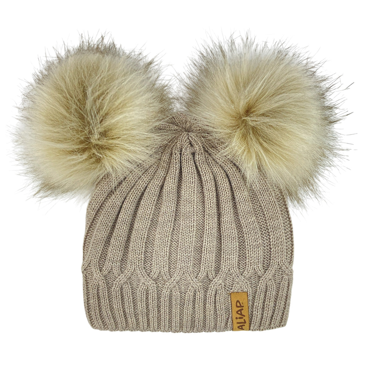 Ungbarna Ullarhúfa með 2 dúskum - Beige
