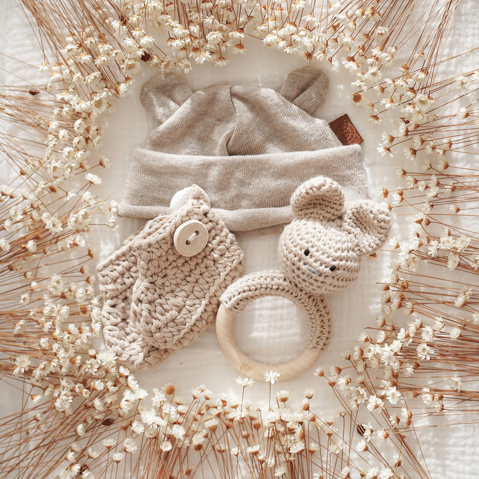 Ungbarna ullarhúfa með bangsaeyrum - Beige