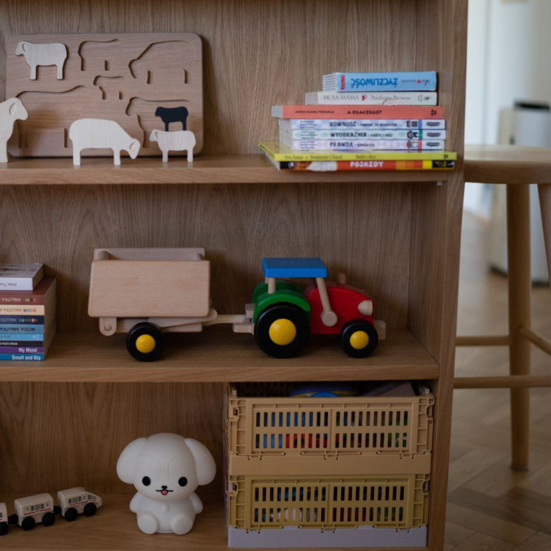 With a clever trailing and tipping mechanism and sliding tow hitch, toddlers can unhitch the trailer and leave it in the barn when it's not required. This extremely durable tractor and trailer play set is made from solid, sustainable European hardwood with a resilient eco-paint finish in red, blue and green with a natural wood trailer. This children's tractor and trailer toy will be enjoyed for many years, and thanks to it's robust design can be handed down to future generations.